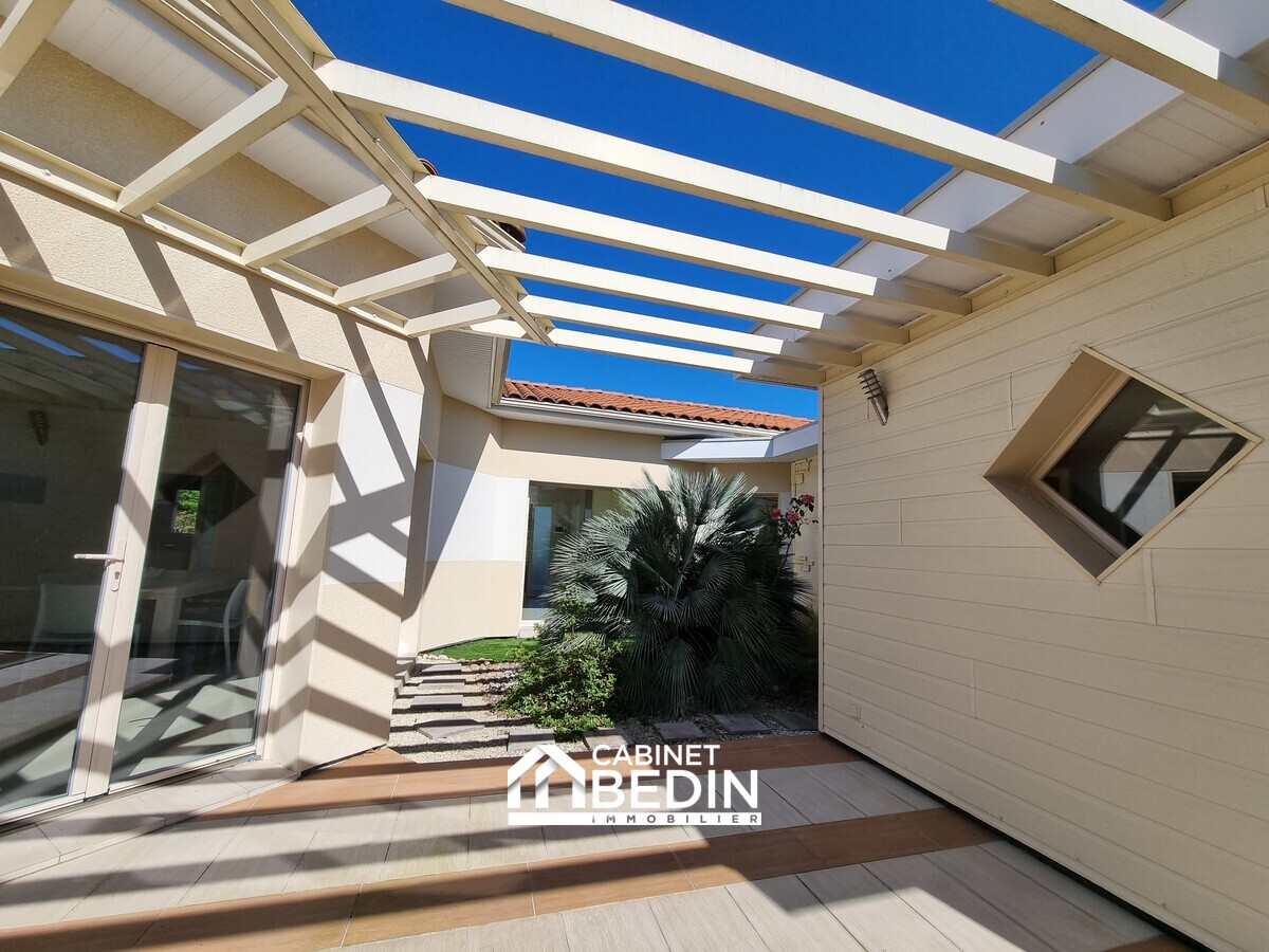 Maison avec piscine,calme et Océan à pied. À seulement 800 mètres de l?océan, au c?ur d?un environnement résidentiel calme et verdoyant en lisière de forêt, cette superbe maison contemporaine offre un cadre de vie rare alliant confort, volumes et qualité de vi...