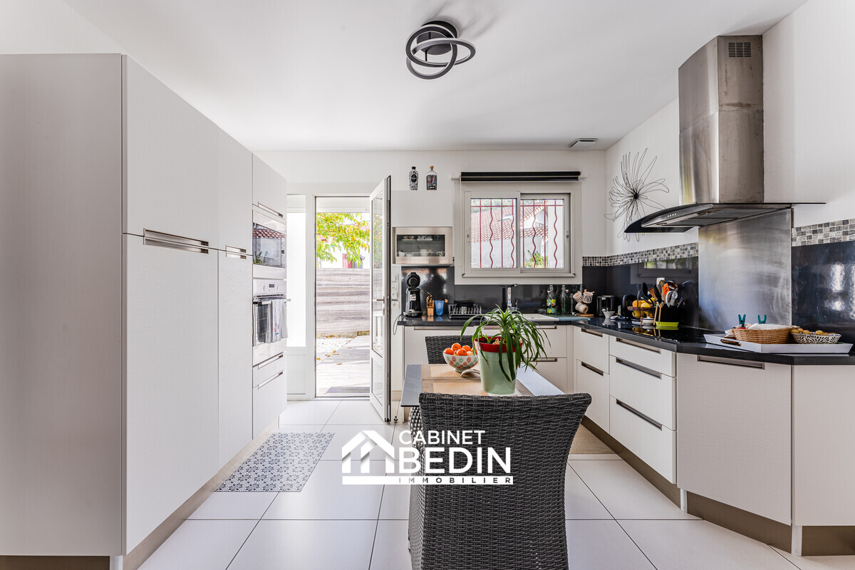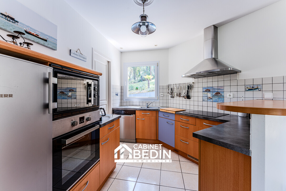 BISCARROSSE PLAGE. Maison de plain-pied d?environ 113m². Cette maison se compose de quatre chambres, d?un salon spacieux ouvert sur le jardin, d?une grande cuisine équipée donnant directement sur l?extérieur, d?une arrière-cuisine, d?une buanderie et d?un cell...