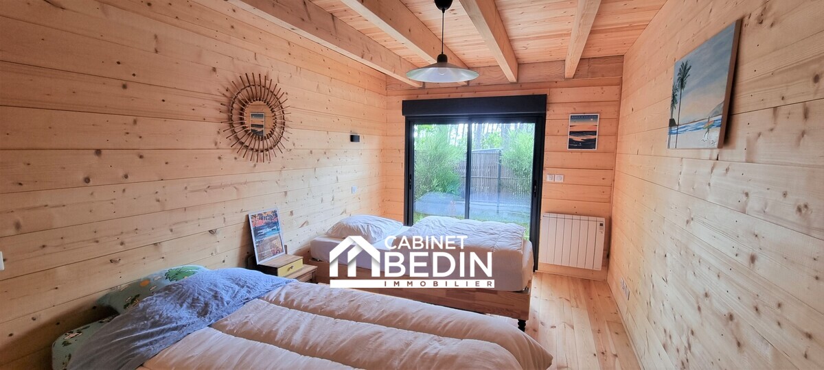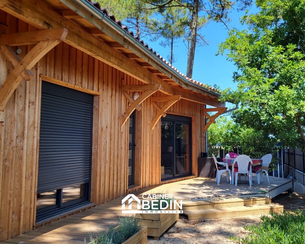 BISCARROSSE LAC. À deux pas du lac Nord et des plages, découvrez cette maison bois contemporaine construite en 2021. <BR>Elle offre une grande pièce de vie lumineuse avec cuisine ouverte, donnant sur un vaste salon, 2 chambres, 2 salles d?eau avec WC, et...