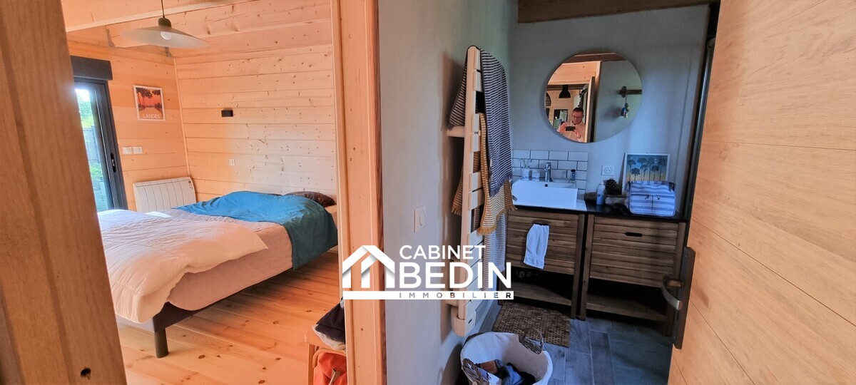 Exclusivité CABINET BEDIN - BISCARROSSE PLAGE. À Biscarrosse Plage, jolie maison de plain-pied, sans aucun travaux à prévoir. Elle se compose d?une pièce de vie lumineuse avec poêle à granulés, d?une cuisine aménagée et équipée, de trois chambres dont deux sui...