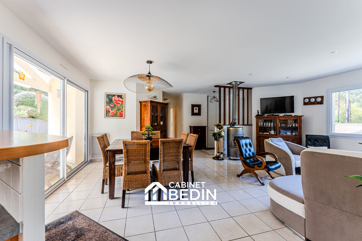BISCARROSSE. Implantée sur un vaste terrain arboré de 958m², cette propriété offre un cadre de vie privilégié avec une atmosphère chaleureuse et authentique grâce à son cachet et ses beaux espaces extérieurs. <BR>Vous serez séduit par son spacieux séjour...