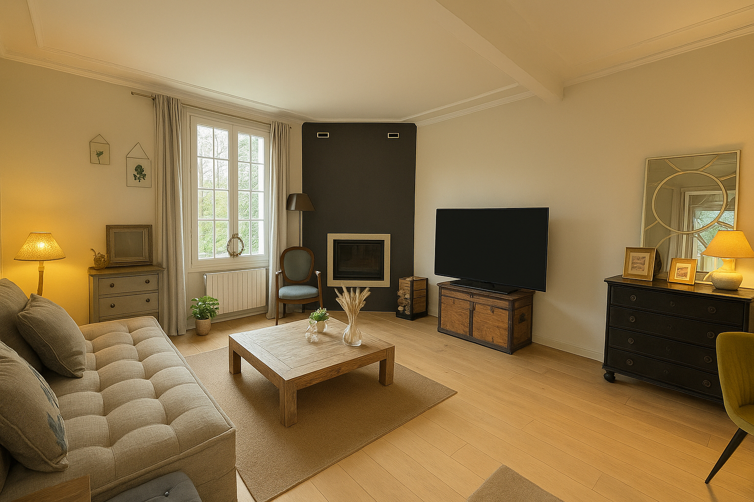 Charmante maison de 38 m² Carrez (environ 50 m² au sol), offrant un cadre paisible.