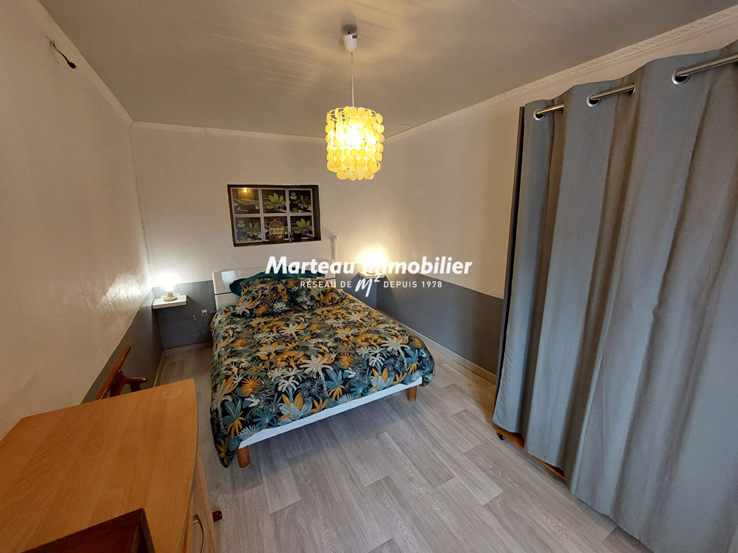 À vendre, maison actuellement louée, parfaite pour un investissement. Elle offre au rez-de-chaussée un grand séjour chaleureux avec poêle, une cuisine aménagée et équipée, ainsi qu'une salle d'eau avec WC.