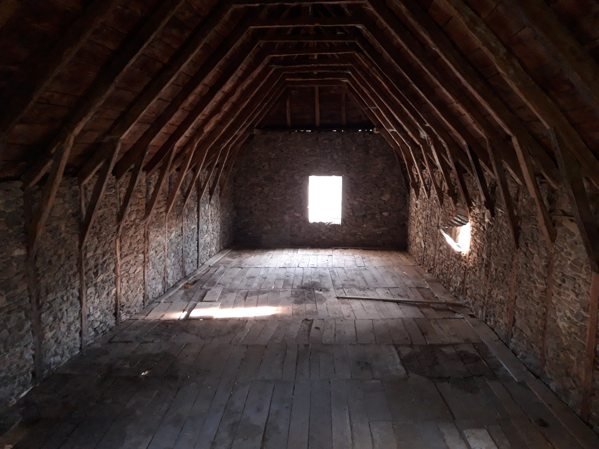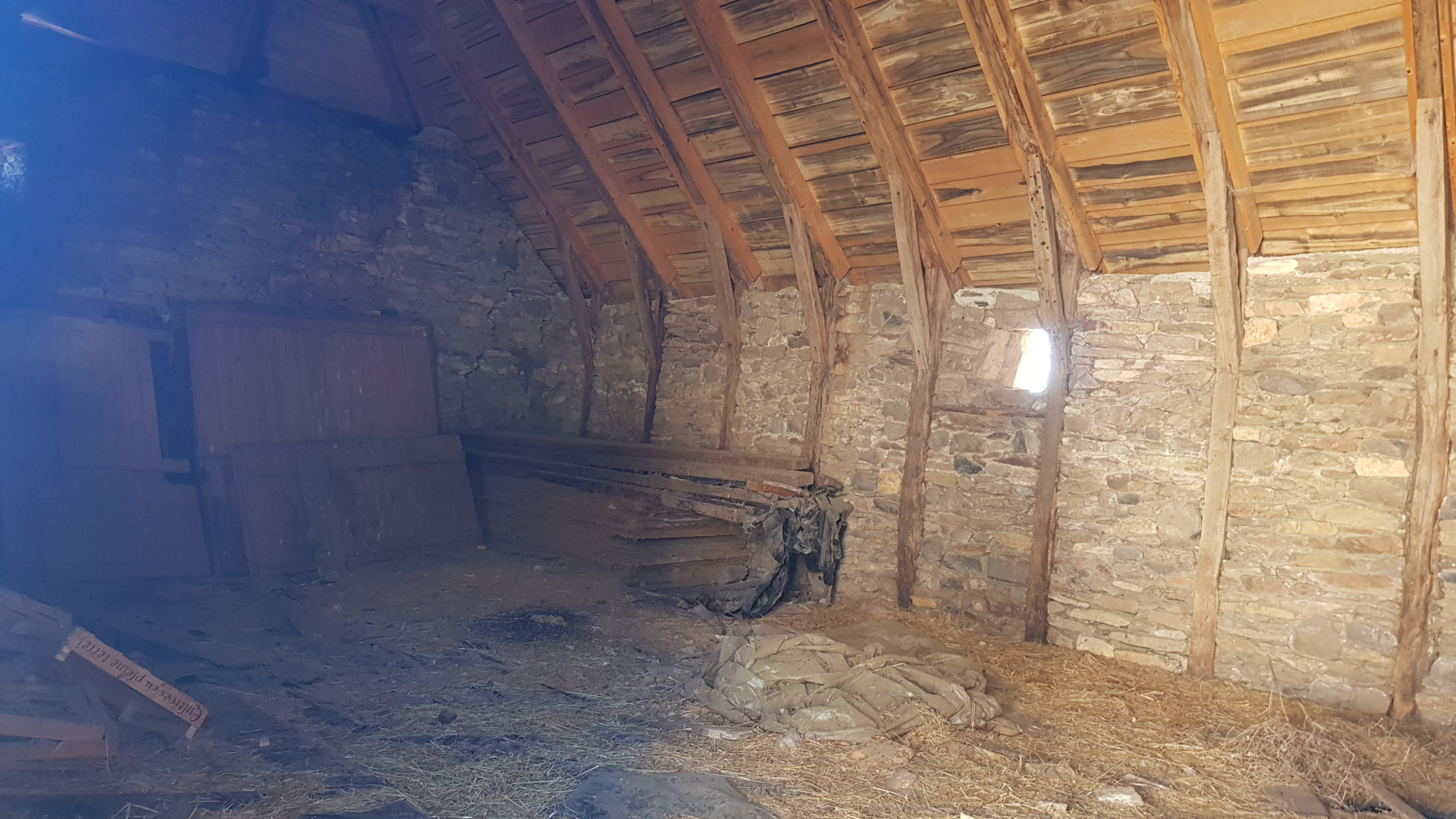 Dans un hameau sur l'Aubrac, grange en pierre avec toit en lauze d'une surface d'environ 105m2 répartis sur deux niveaux.