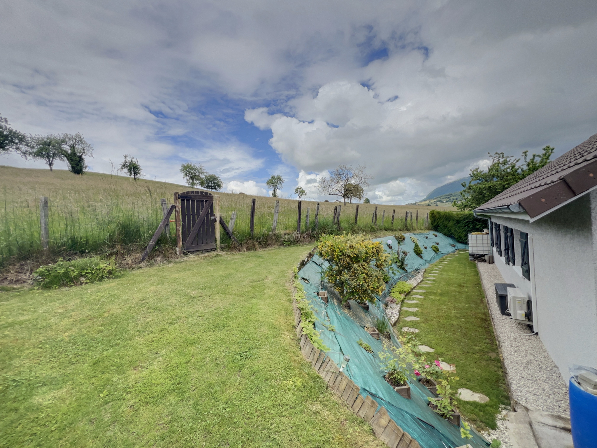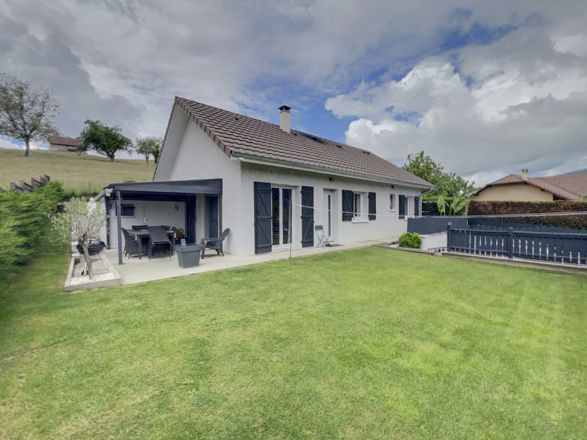 En campagne au calme, situé entre Novalaise Lac d'AIguebelette et Yenne, 15mn de l'autoroute, agréable maison de 2017 offrant environ 185m2 sur 1936m2 de terrain clos plein sud avec vue dégagée sans vis à vis. La maison se compose en rdc d'une b...