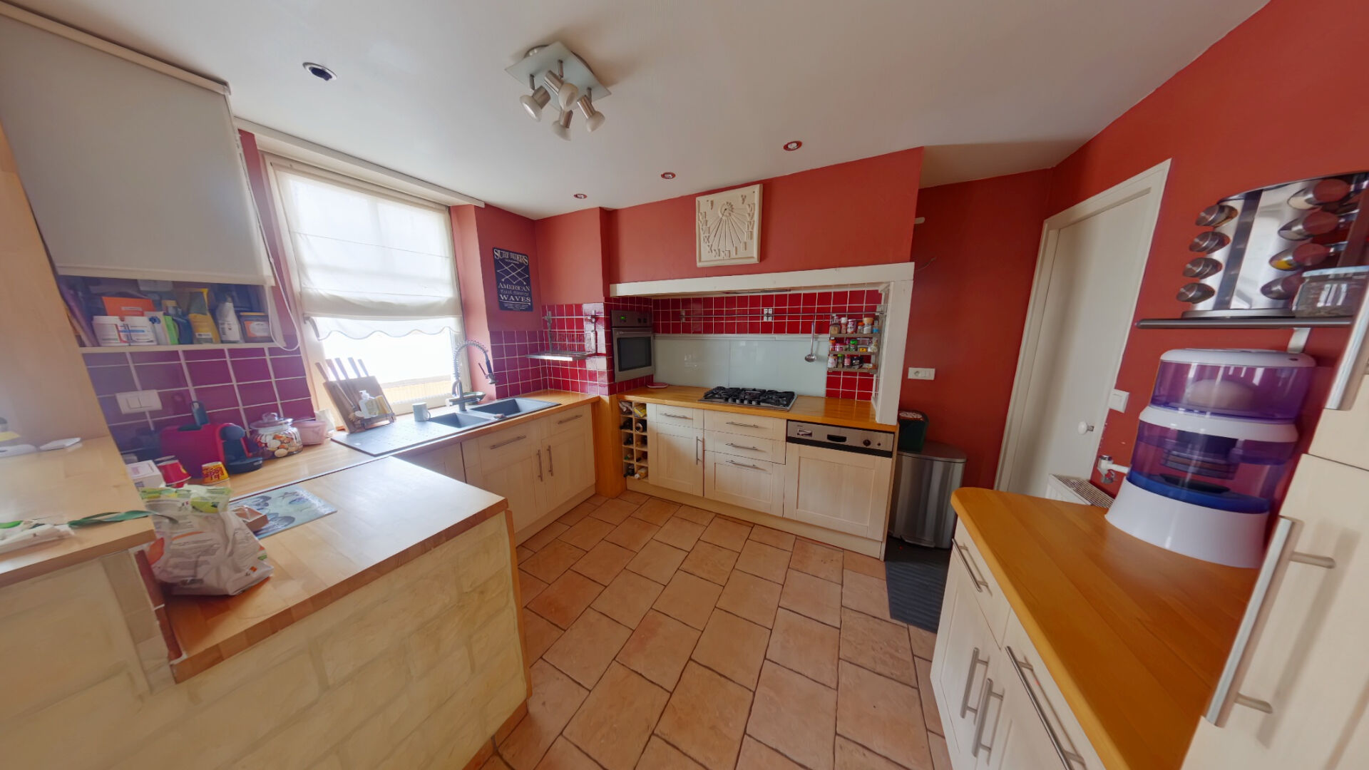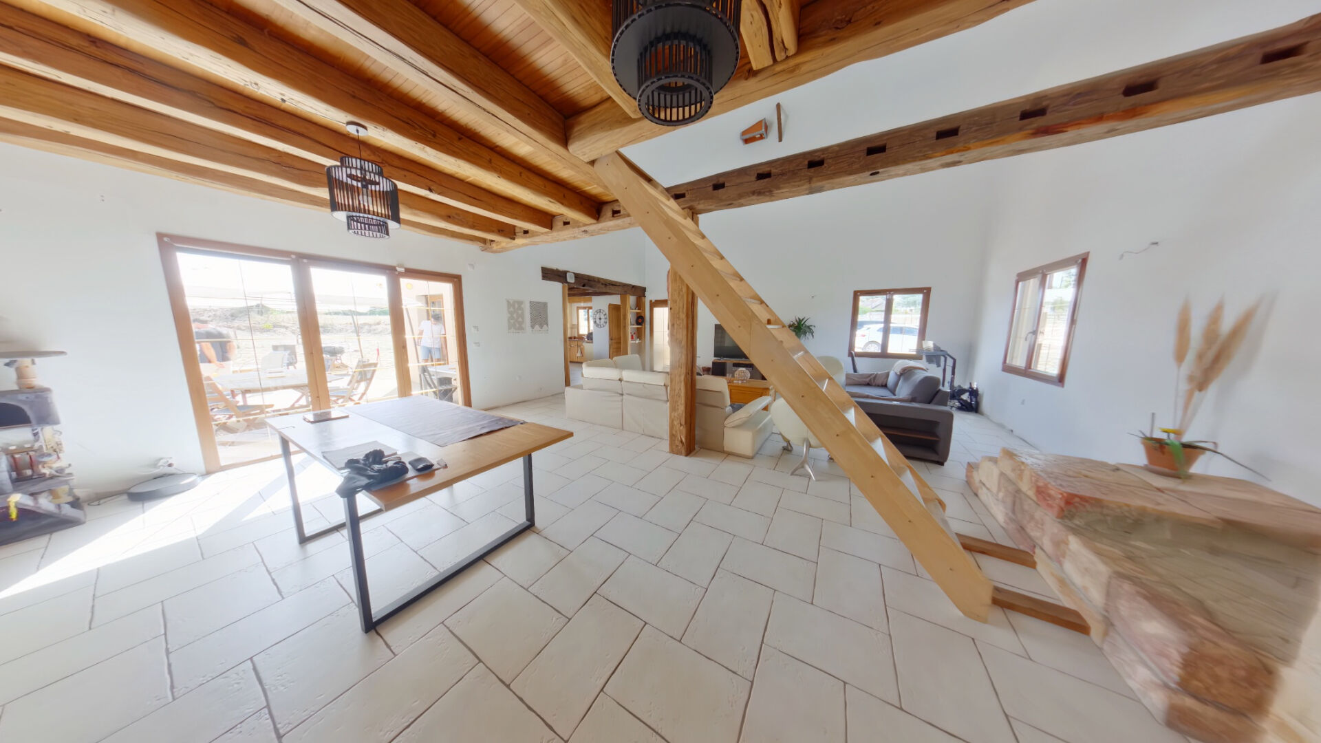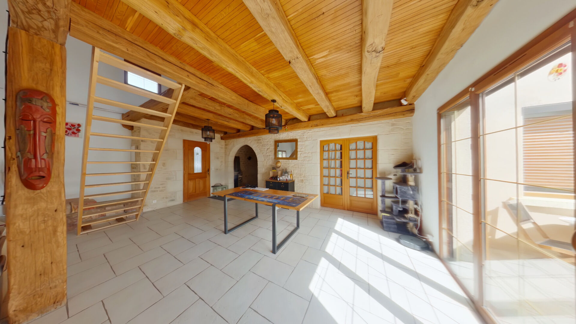 Entrée donnant sur une grande pièce de vie lumineuse avec cuisine ...