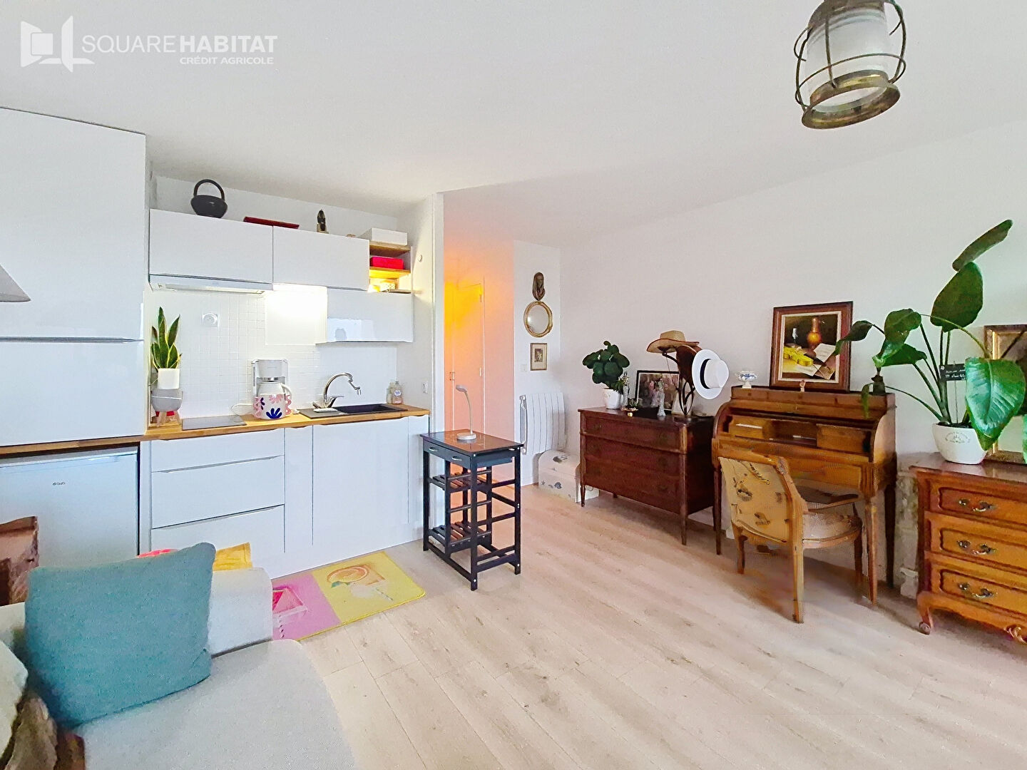 Studio situé au rez de chaussée d'une résidence idéalement placée, il comprend une pièce de vie, un coin cuisine haut de gamme et une salle d'eau avec WC.