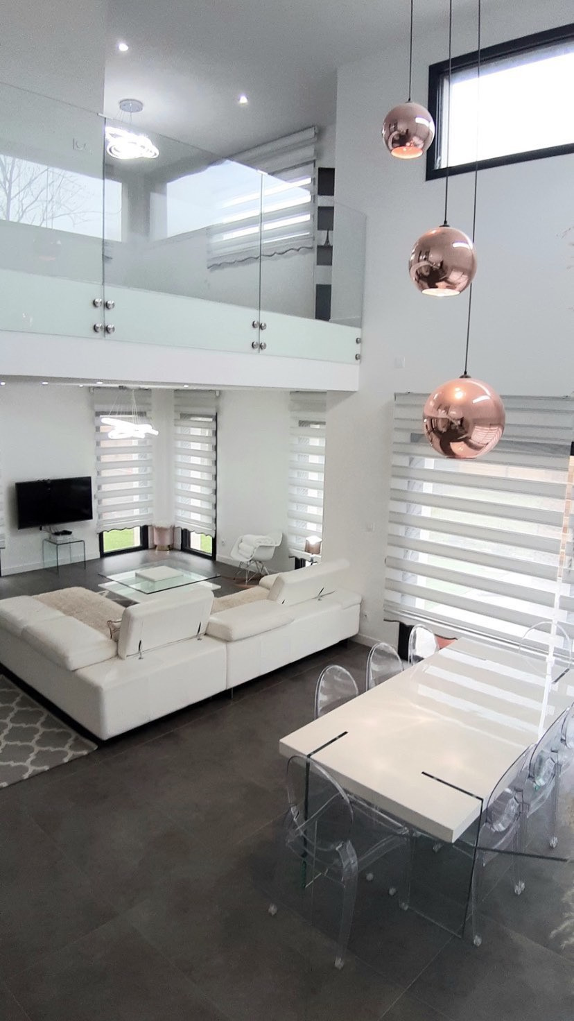 Vendu ! SAINT-BARTHELEMY-D'ANJOU, quartier 'La Taillanderie', EXCLUSIVITÉ YVAN HUET IMMOBILIER, spacieuse et lumineuse maison à l'architecture contemporaine offrant au rez-de-chaussée : entrée, salon, avec cheminée foyer ouvert, communiquan...