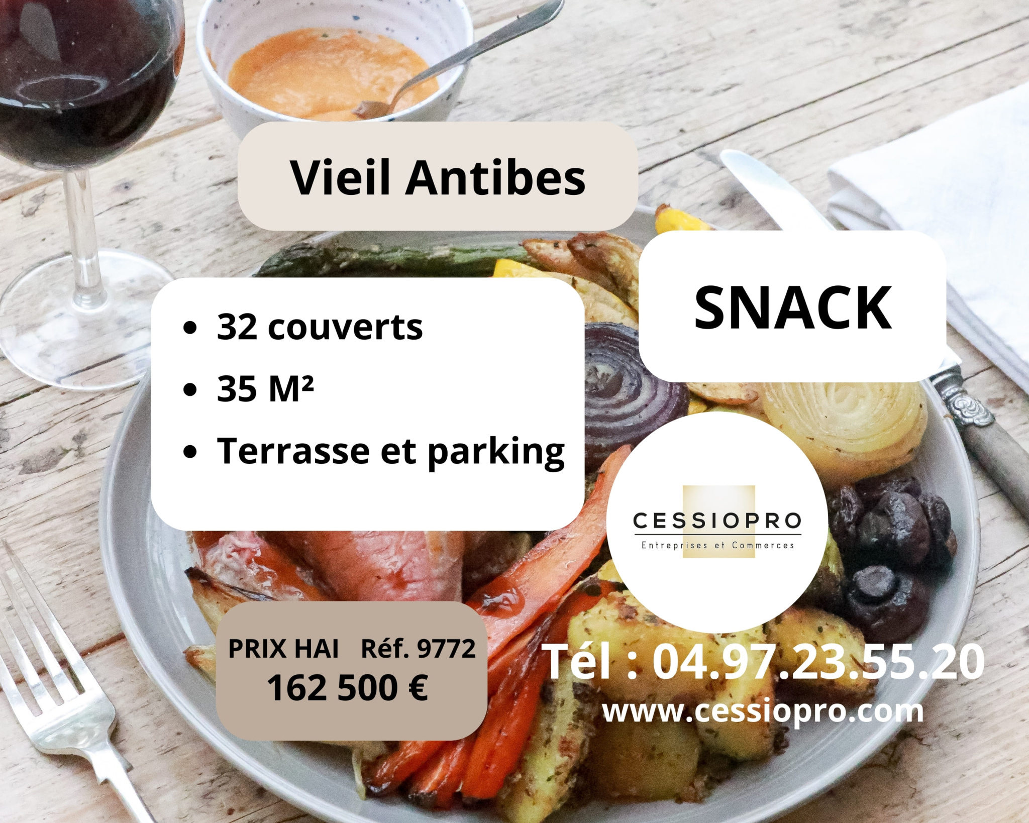 Vieil Antibes, snack, totalement rénové, idéalement situé, terrasse et parking.