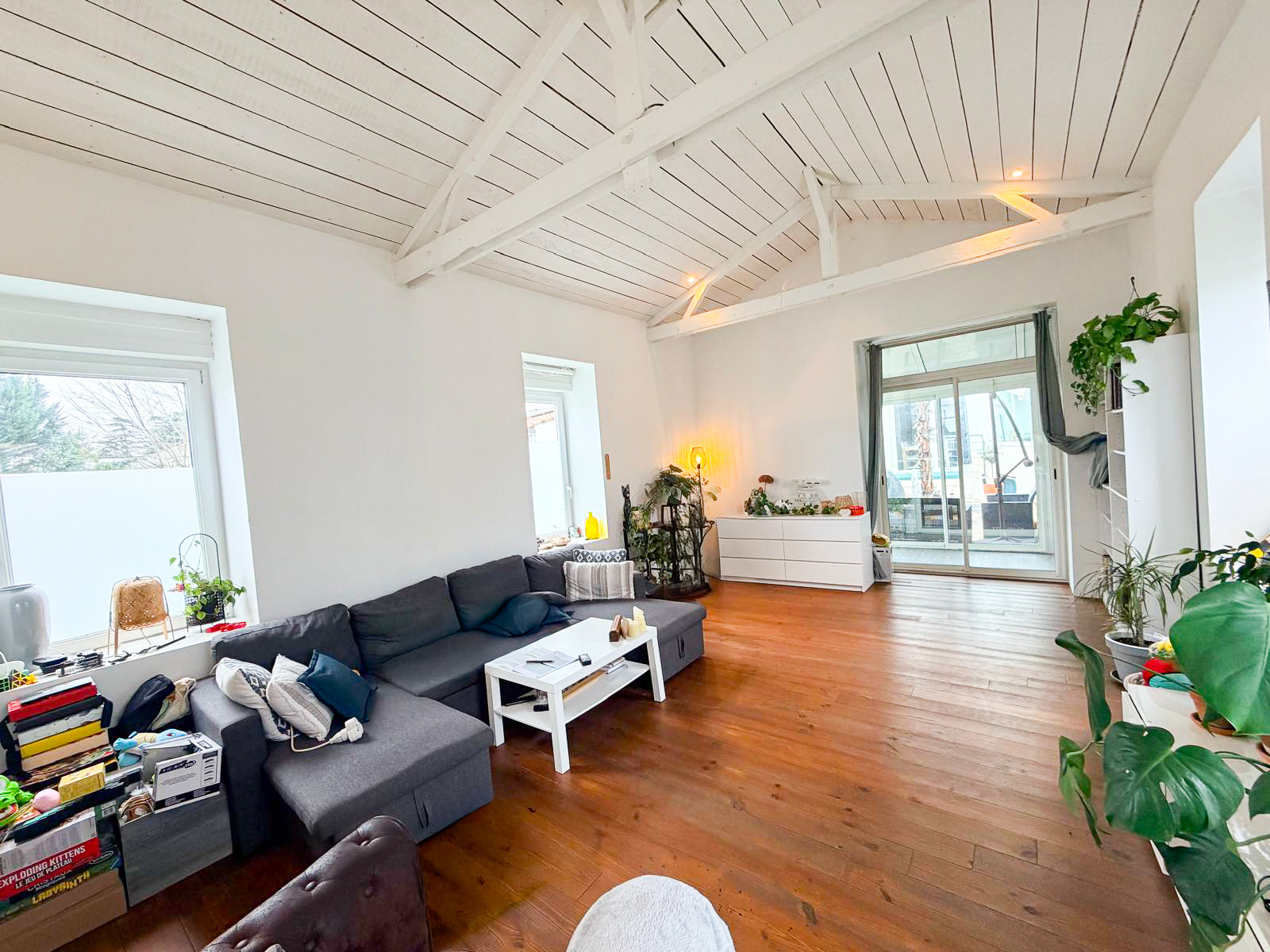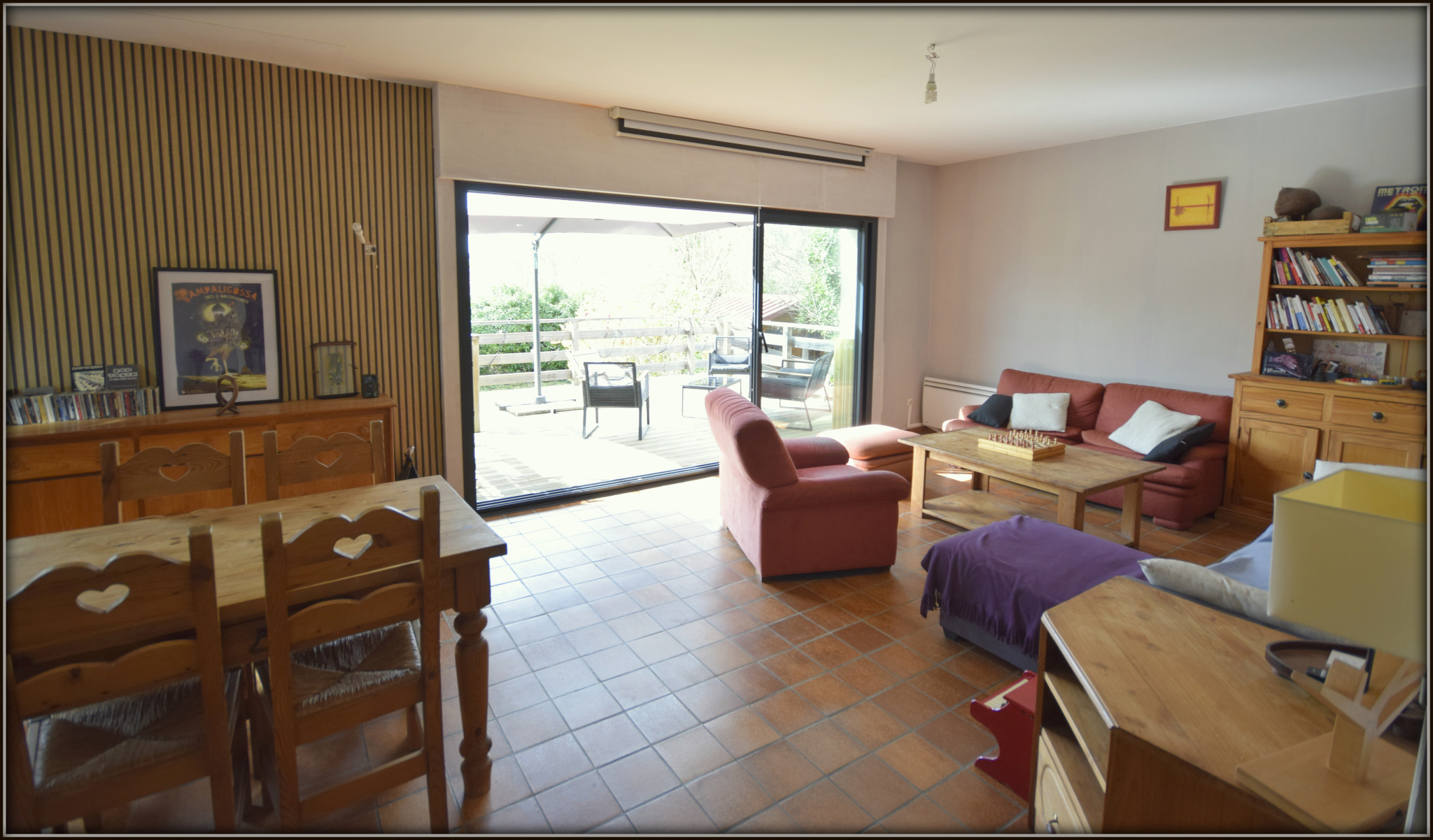 En rez-de-chaussée, on trouve une grande pièce de vie très lumineuse accompagnée d'une vaste terrasse en ...