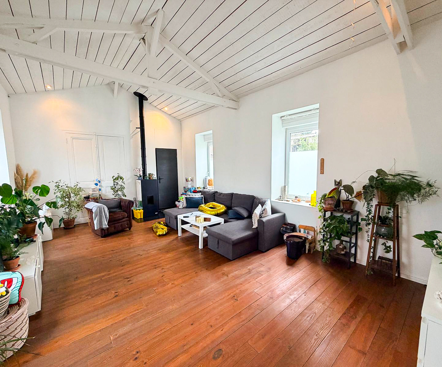 - Au rdc : une vaste pièce de vie avec cuisine ouverte toute équipée, un buanderie, un wc.