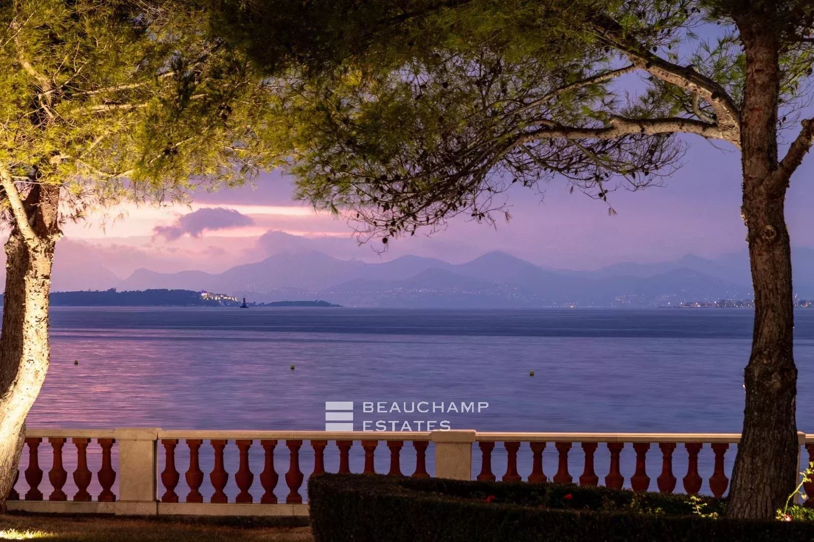 Située sur une adresse d’exception sur le versant Ouest du Cap d'Antibes, face à la plage des Ondes, cette villa Belle Époque avec vue mer panoramique de 355m2 sise sur un terrain de 1 958 m2.