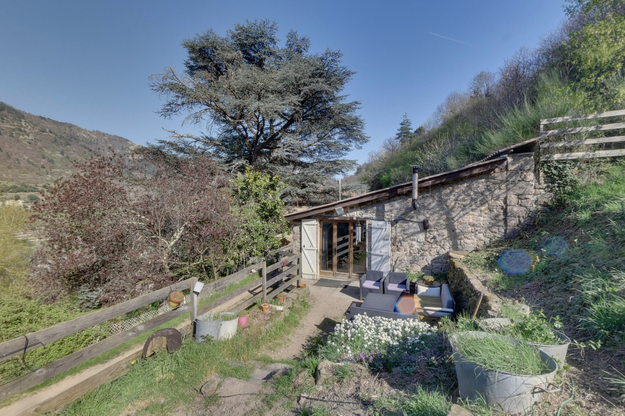A proximité immédiate d'un village vivant et recherché, cette propriété en pierre rare à la vente offre un beau potentiel de rénovation.