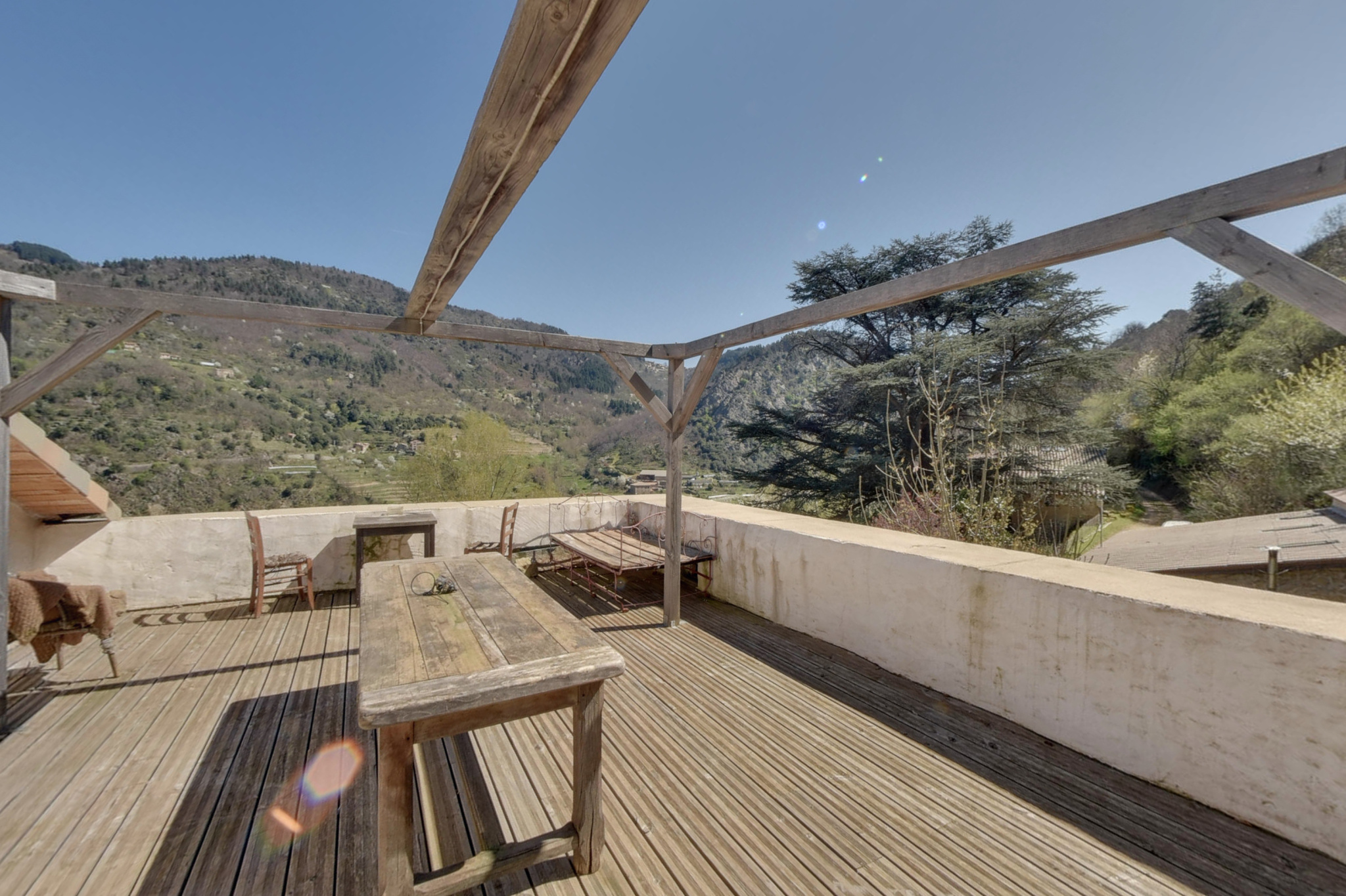Maison en pierre de village d'une superficie de 156 m2, avec jardin privatif et une vue panoramique.