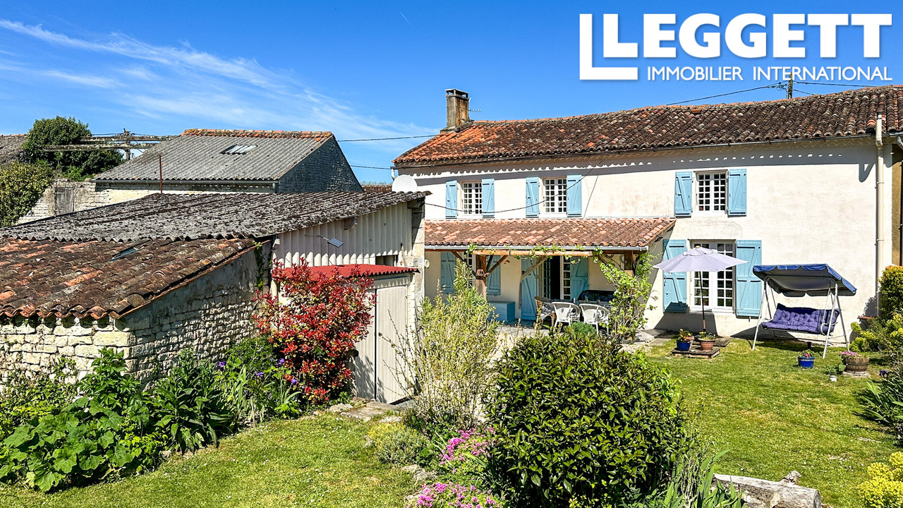 A44006JHI17 - Située dans un grand village avec boulangerie et à 8 km de Saint-Jean-d'Angély, cette charmante maison de style cottage allie caractère et authenticité avec murs en pierre, poutres apparentes, parquet et cheminée.