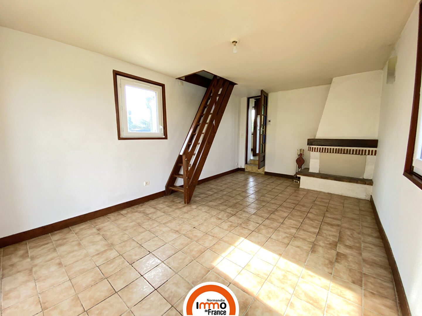 À vendre à Saint-Julien-de-la-Liègue, charmante maison de 49 m² au sol comprenant une cuisine indépendante, une chambre avec salle de douche et WC, séjour avec cheminée et mezzanine pouvant servir de chambre.