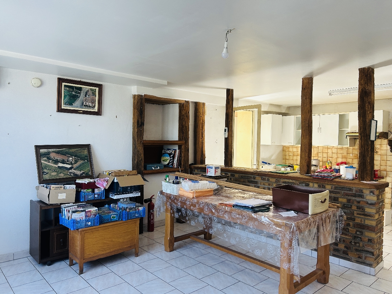 MAISON de campagne : entrée ouverte sur grande pièce de vie avec poêle à bois, spacieuse cuisine, chambre, salle d'eau avec wc séparé.