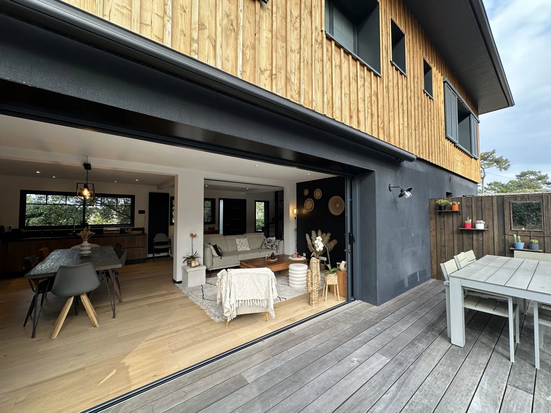 Dans un quartier résidentiel prisé de La Teste de Buch, cette maison d'architecte de 200 m² est érigée sur une vaste parcelle de plus de 1300 m² offrent un cadre de vie idéal et une intimité préservée.