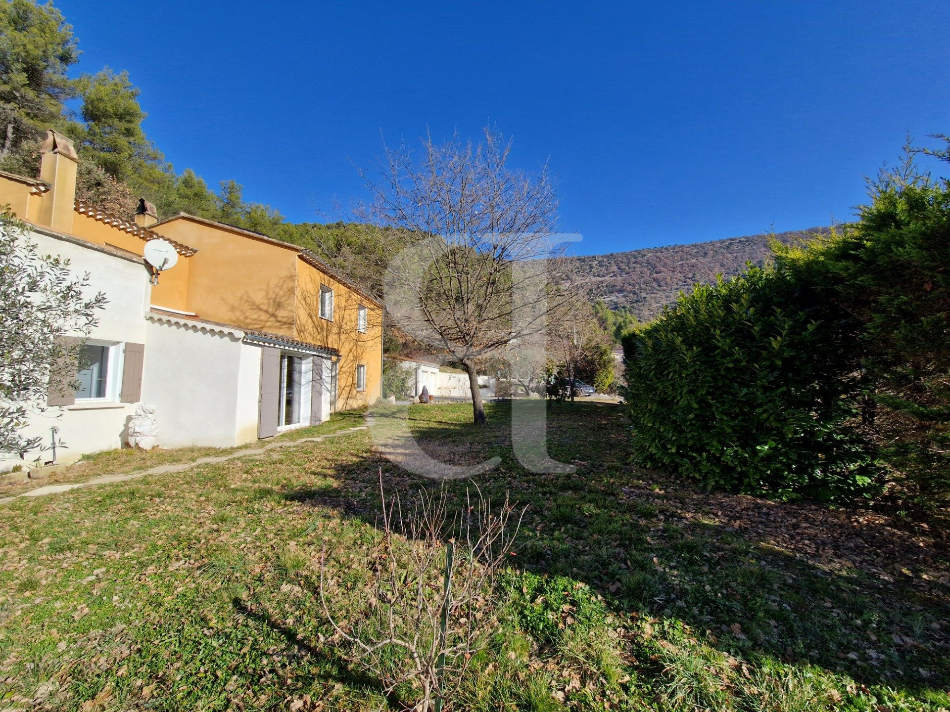 Découvrez cette belle villa à vendre à 5 minutes de Nyons, sur un grand terrain boisé de plus de 2ha. Elle bénéficie d'une terrasse couverte donnant sur le jardin, arboré, et d'un double garage.
