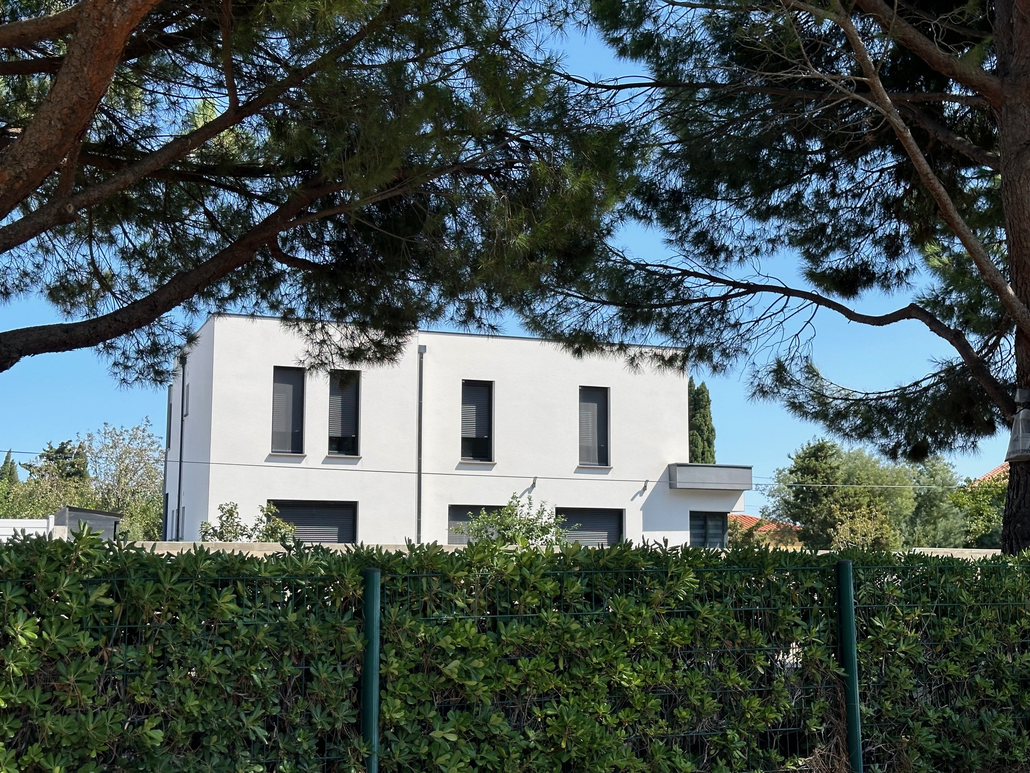 DRIVE IMMO NARBONNE Vous présente... À Perpignan, dans un secteur résidentiel prisé à proximité immédiate de l'hôpital, découvrez cette superbe villa contemporaine libre sur ses quatre faces, édifiée sur un terrain de 503 m2 avec piscine lagon et prestati...