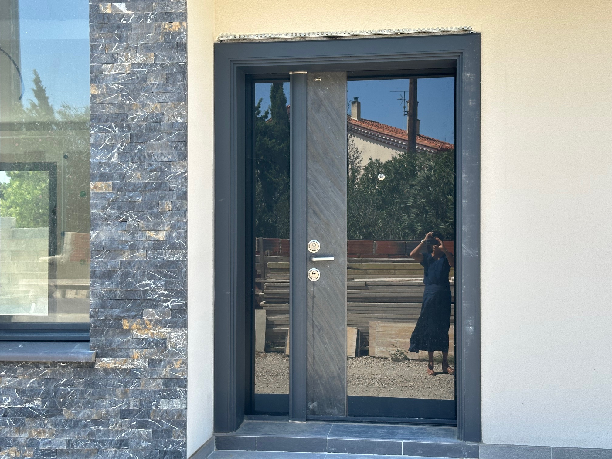 Perpignan, coup de coeur, villa très récente 2022 en 3 faces sur terrain de 400m2 avec piscine maçonnée pierre de Bali, 4 pièces de 120m2 de surfaces habitables, offre une belle entrée avec porte e bois, placards à l'entrée, une jolie suite parentale au R...