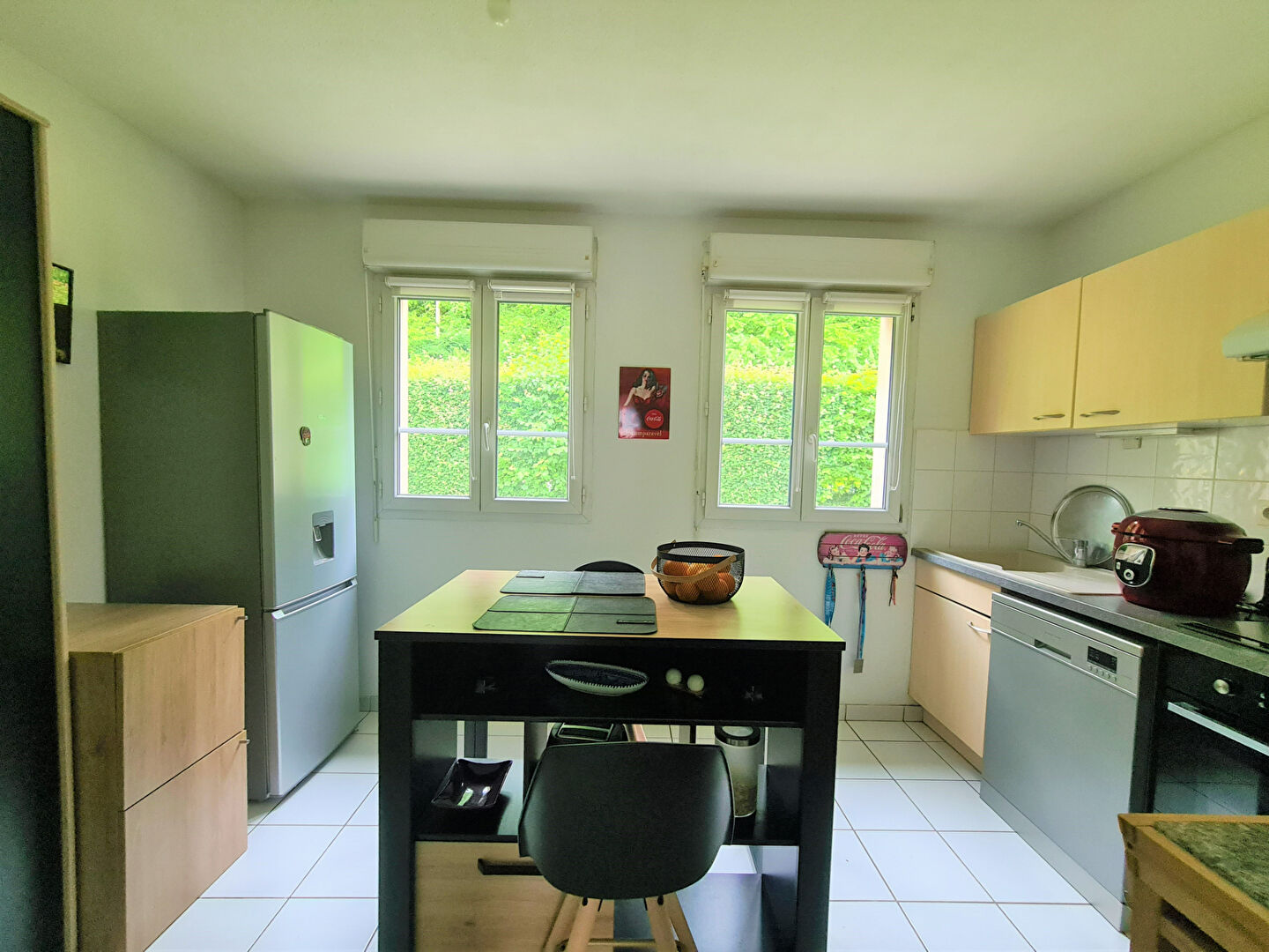 A vendre maison de ville mitoyenne , proche gare Oissel avec cuisine équipée et séjour.