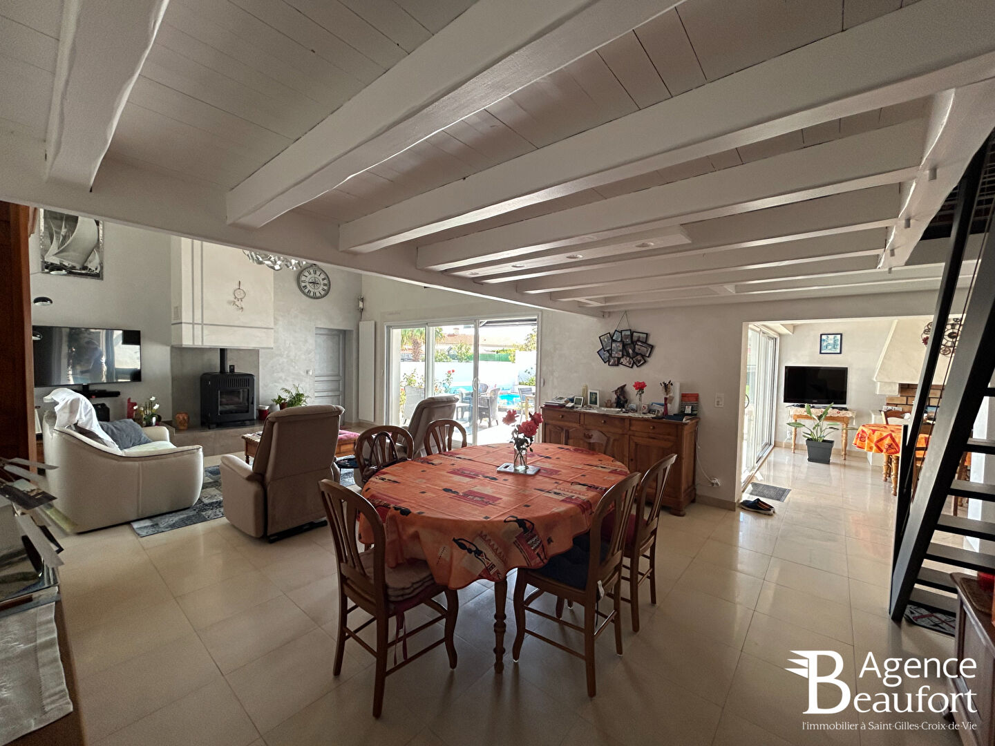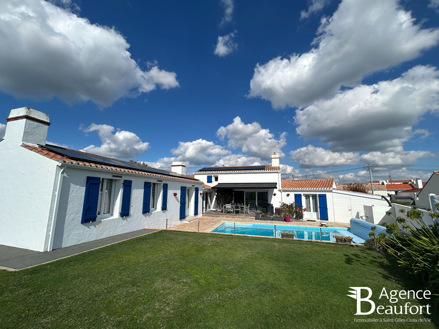 Excellent emplacement, à 500 m des commerces de Saint Gilles Croix de Vie , 900 m de la plage . Maison en parfait état sur 818 m² de terrain clos et arboré avec piscine chauffée. Avec ses 169 m², elle offre : hall d'en...