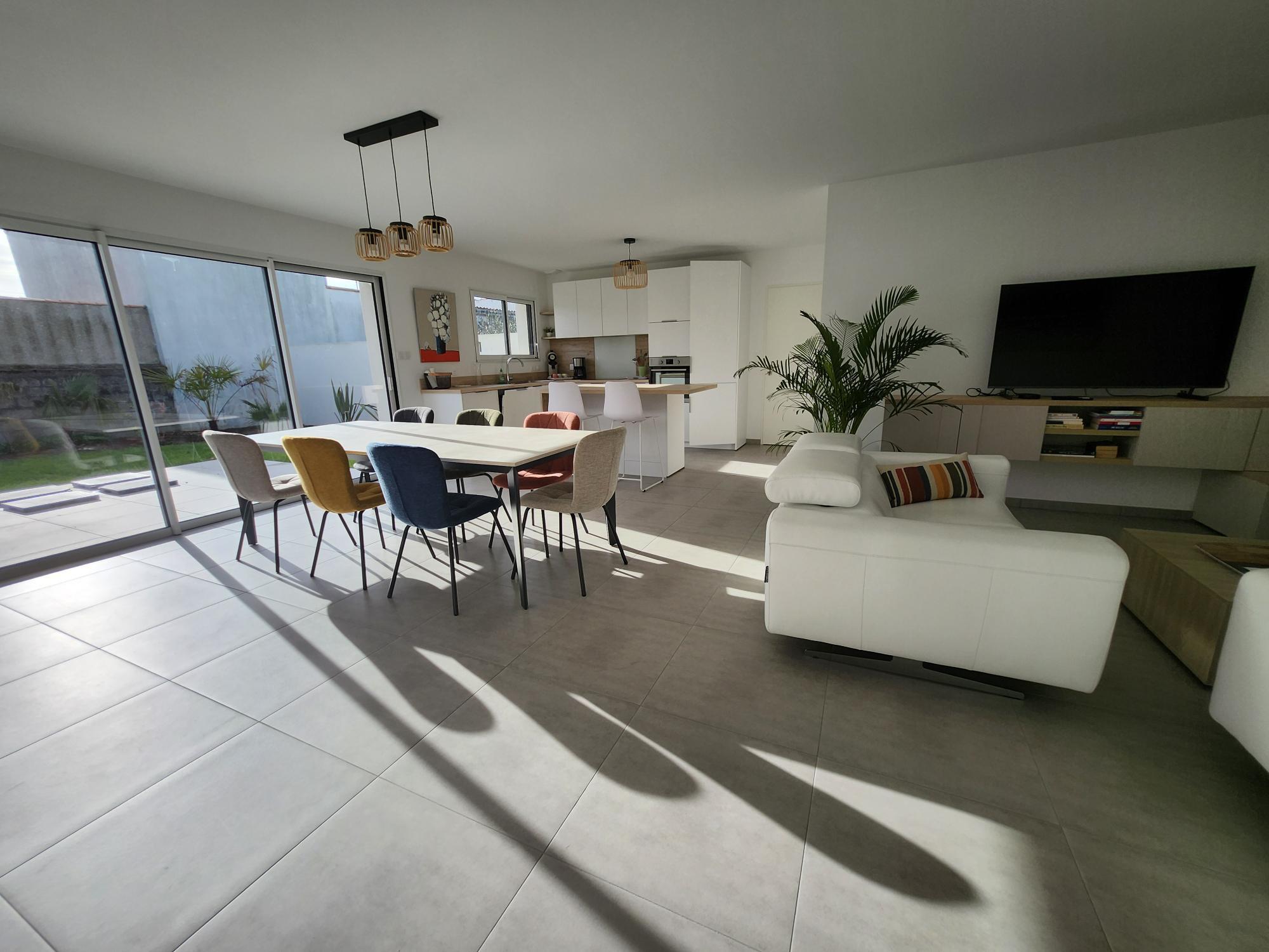 Quartier très recherché, à seulement quelques pas de la corniche vendéenne, pavillon récent ' 2023 ' équipé de belles prestations pour ces 136 m2 d'habitation, dont une pièce de vie exceptionnelle de 76 m2, cellier, une chambre avec espace dress...