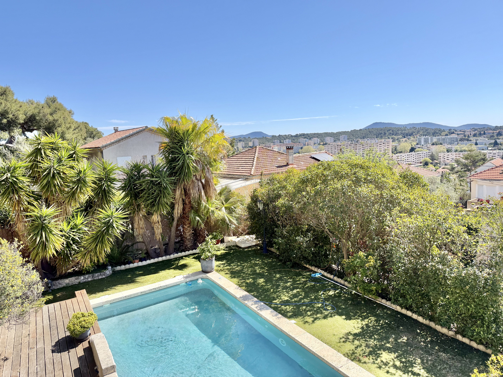 Toulon Est - Bas Faron, dans un secteur résidentiel, arboré et proche des commodités, retrouvez cette maison 7 pièces de 173m2 habitable avec garage, piscine et dépendance.