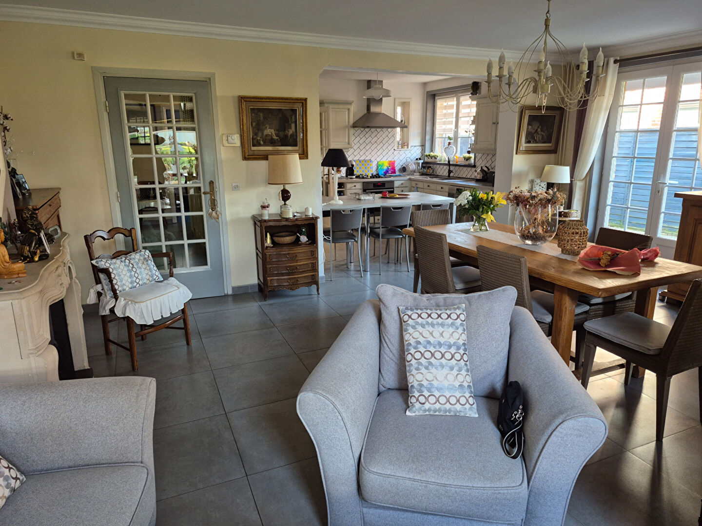 Maison lumineuse située dans un environnement de 1er ordre offrant au rez-de-chaussée un hall d'entrée, une cuisine équipée ainsi qu'un séjour de 40 M2 avec vue sur le grand jardin.