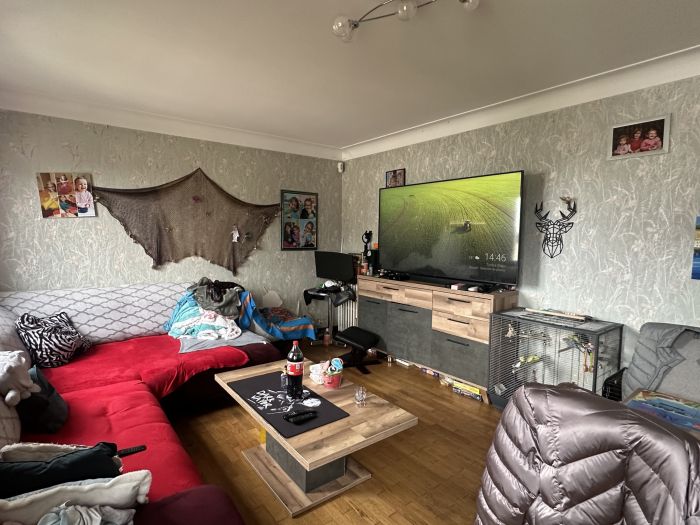 Habitation comprenant entrée, séjour lumineux avec cheminée, cuisine séparée, salle de bain, WC, 3 ...