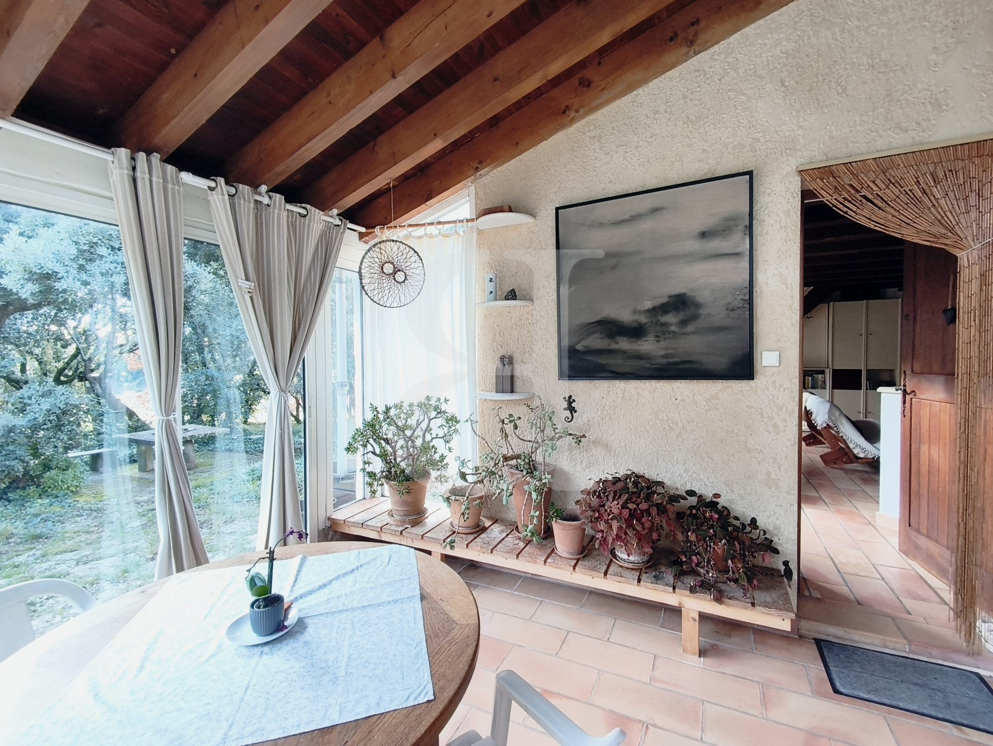 Venez découvrir cette villa traditionnelle construite en 1987 sur un terrain boisé d'oliviers dans un environnement sans nuisances à l'orée du village provençal de Visan.