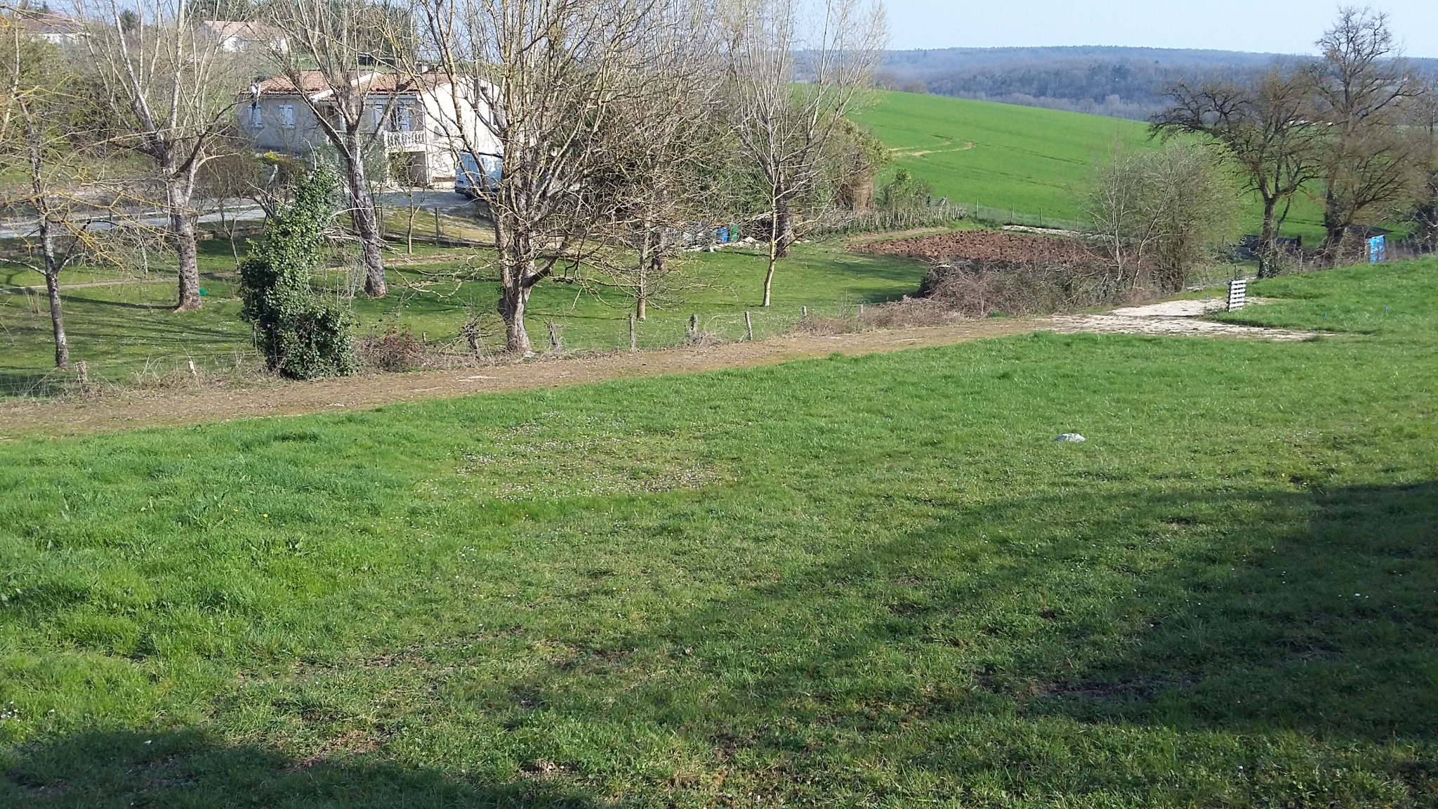Chasseneuil sur Bonnieure. 25 minutes Angoulême Nord. Terrain à construire en façade et prairie attenante sur l'arrière de plus d'1 ha. Eau et électricité en façade.