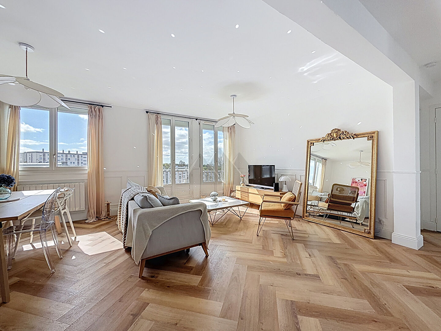 Situé au dernier étage sans ascenseur, cet appartement spacieux et très lumineux de 95 m² offre de beaux volumes et une vue dégagée avec balcon.