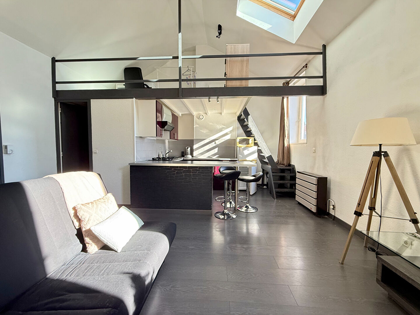 Situé au 3e étage d'une résidence sécurisée, rue des Jardins à Lille, ce studio avec mezzanine de 22,20 m² loi carrez et de 28.80 m² au sol est très bien agencé.