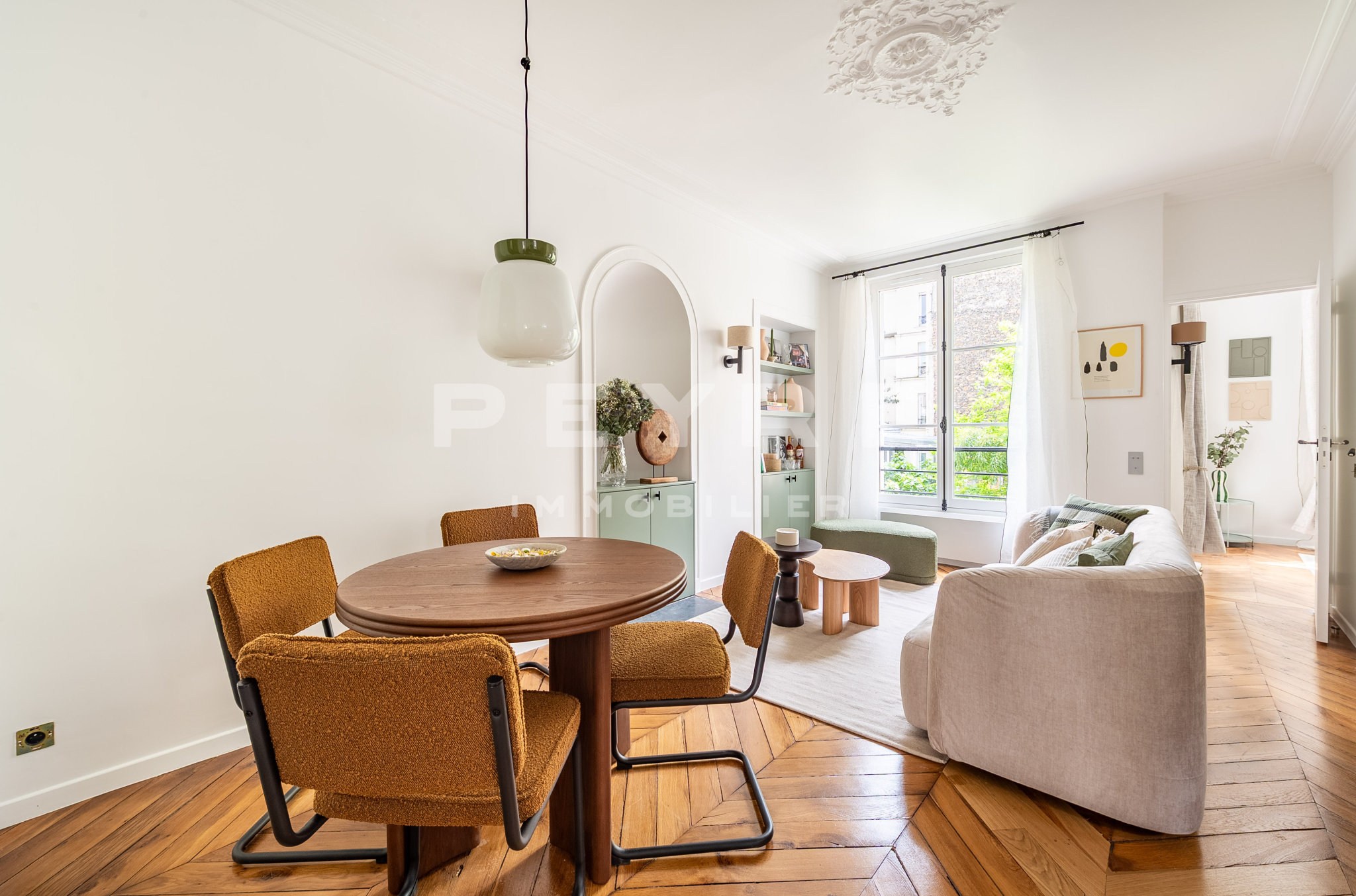 Situé aux 4e et 5e étages d'un immeuble bien entretenu avec ascenseur, cet appartement en bon état offre une distribution optimisée et le charme typiquement parisien. Au 4ème étages : une entrée, un salon lumineux, une salle à manger, une cuisine aménagée...