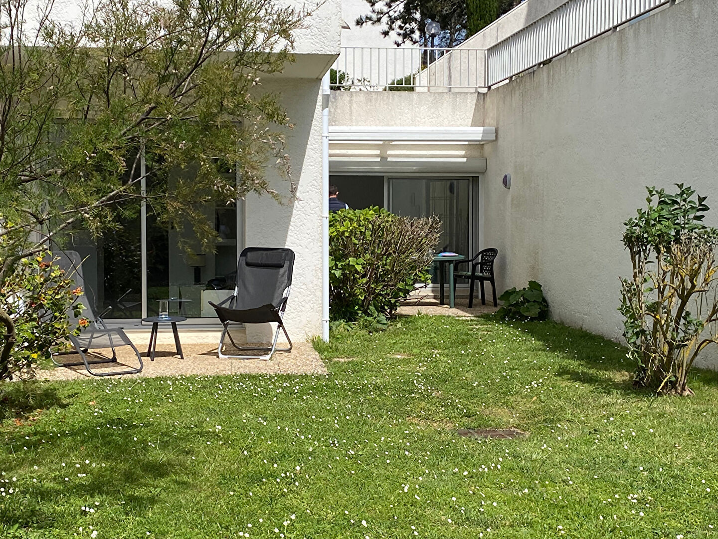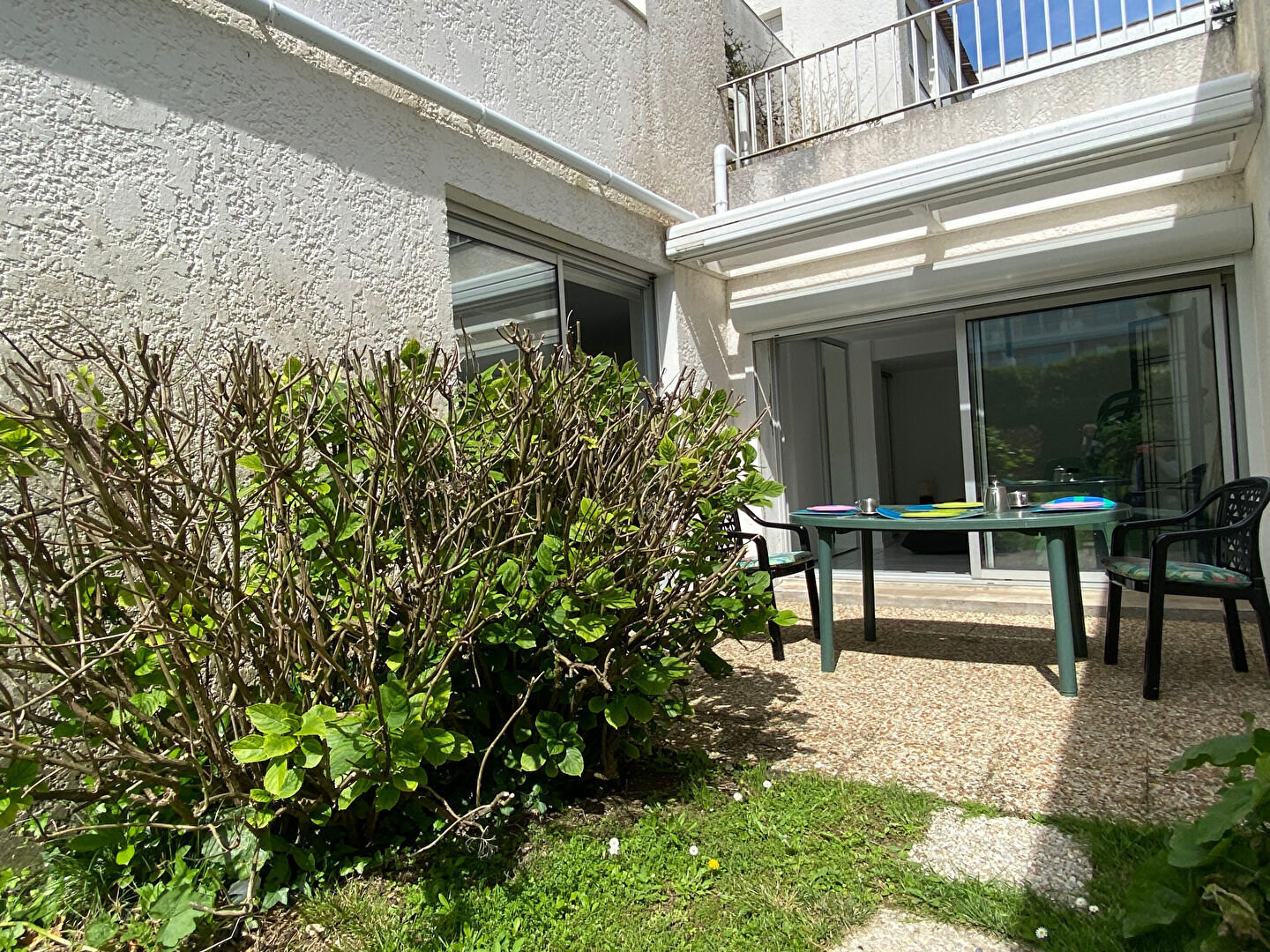 Cet appartement est situé au rez de chaussée d'une petite co -propriété de deux logements .