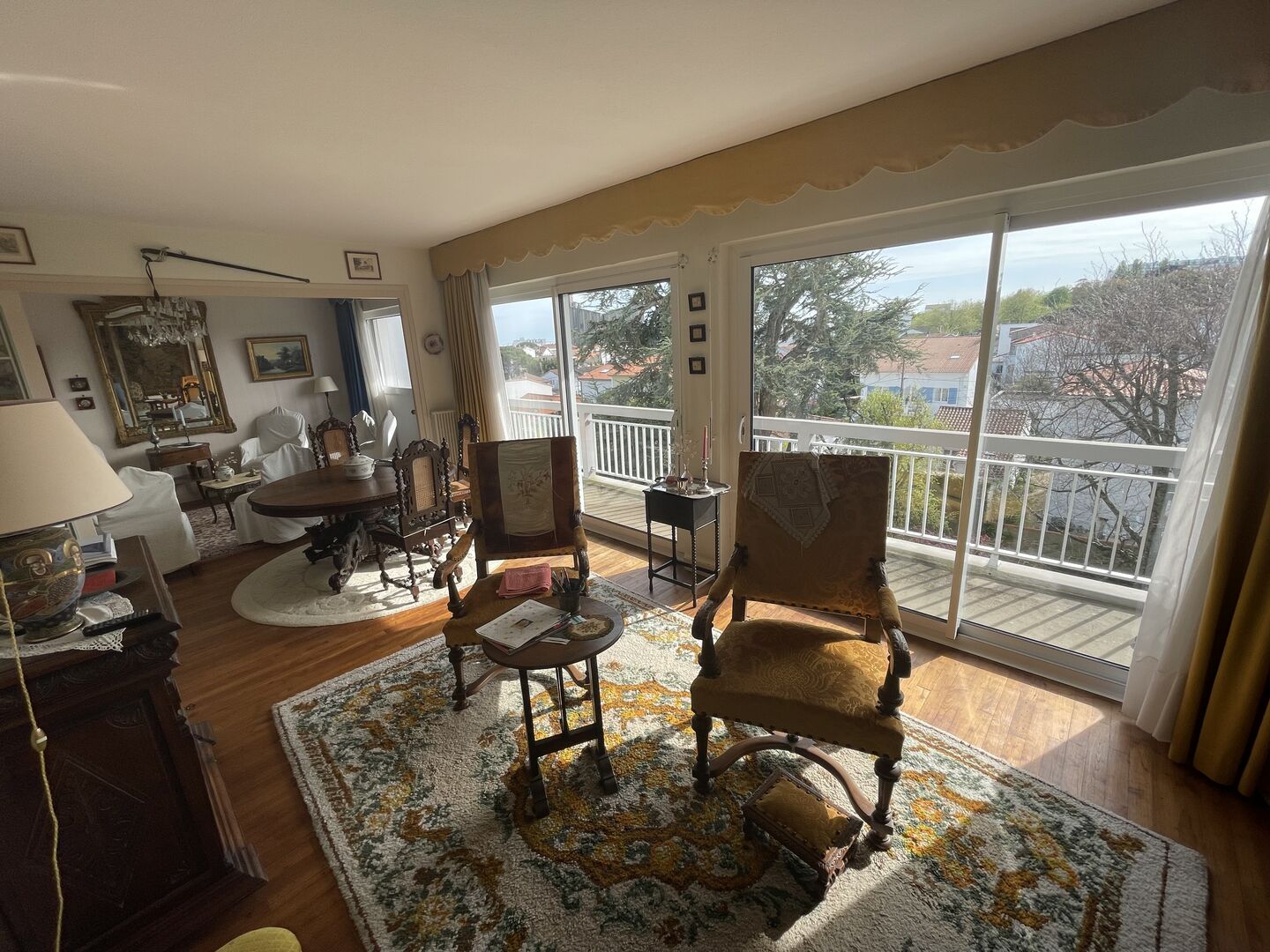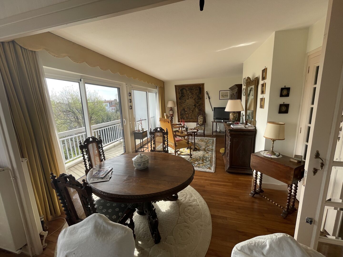 Entrée , double séjour avec placards donnant sur un grand balcon avec store ...