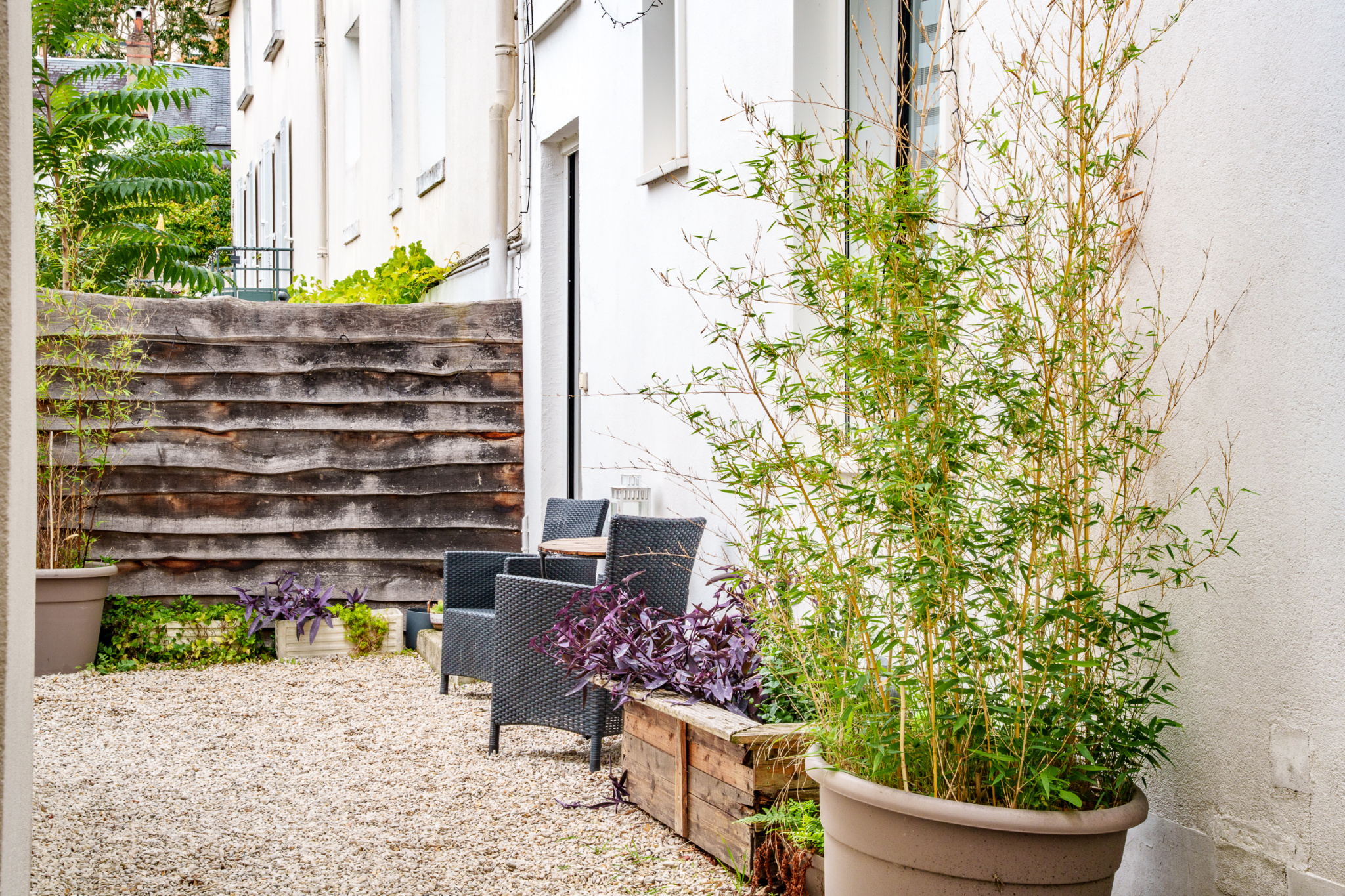 Entrée, séjour donnant sur le jardin de la copropriété, 2 chambres, cuisine séparée, salle d'eau, WC, grand placard.