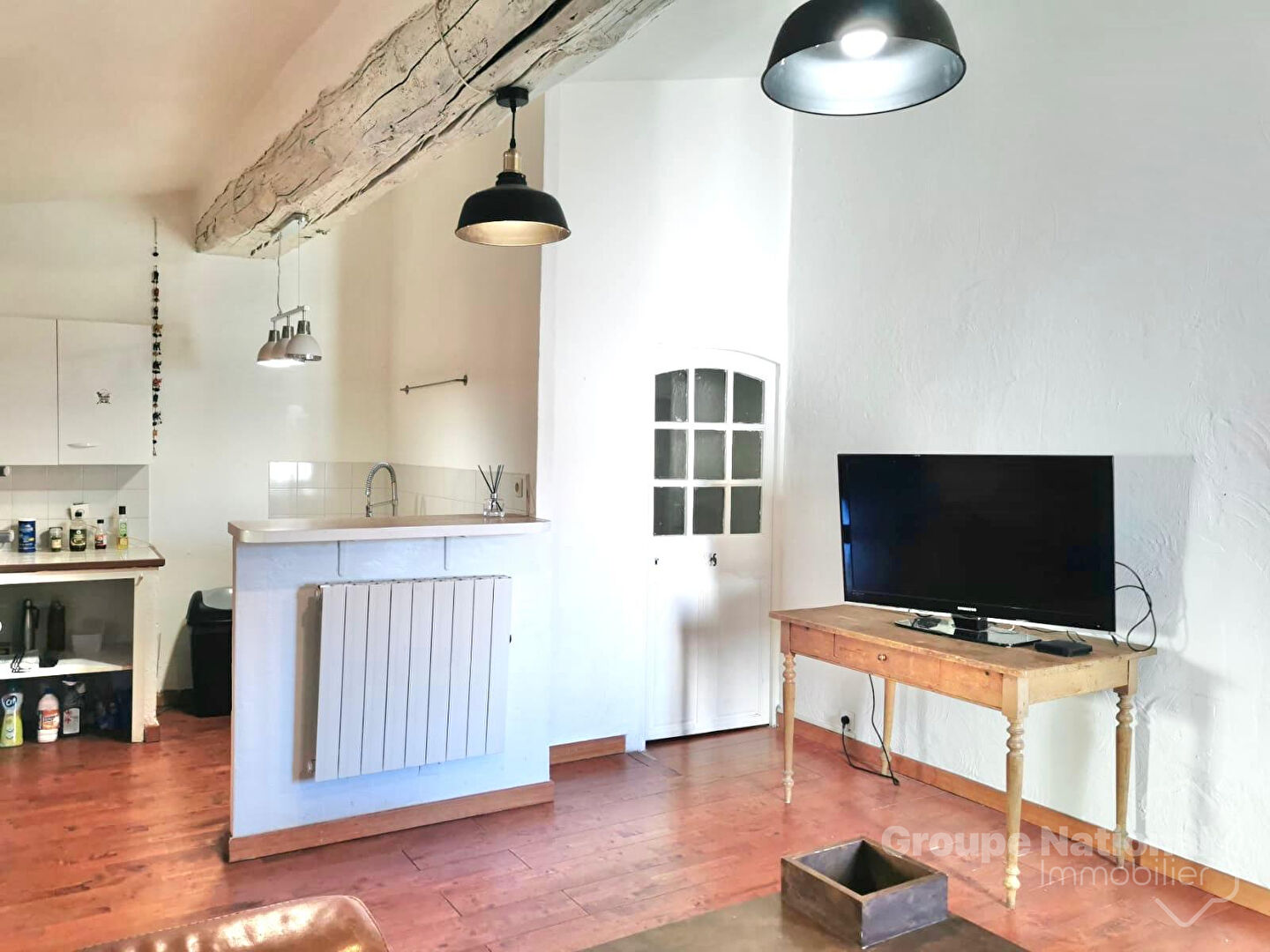 Centre-ville.<BR>Studio d'environ 36 m² avec belle hauteur sous plafond à la française et cheminée à insert. Un espace séjour/cuisine de 29 m², salle d'eau, wc. Volets électriques, double vitrage, climatisation réversible Beaucoup de charme ! U...