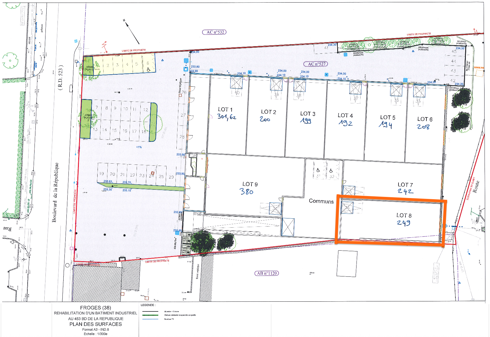 FROGES, local professionnel d'une surface totale de 249 m2 en copropriété.