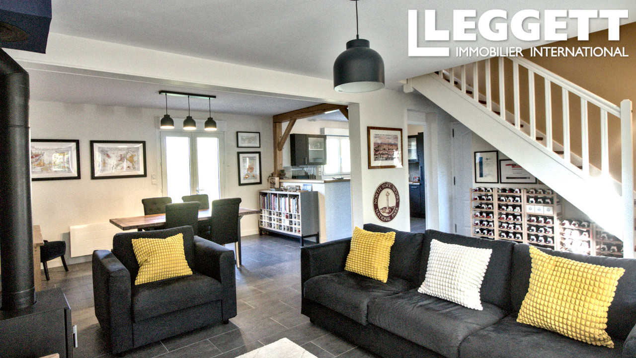 A43711BS14 - Maison d'habitation lumineuse et fonctionnelle offrant de beaux volumes et un cadre de vie agréable. Le rez-de-chaussée se compose d'un séjour / salle à manger chaleureux avec poêle à bois, d'une cuisine, d'un bureau pouvant ég...