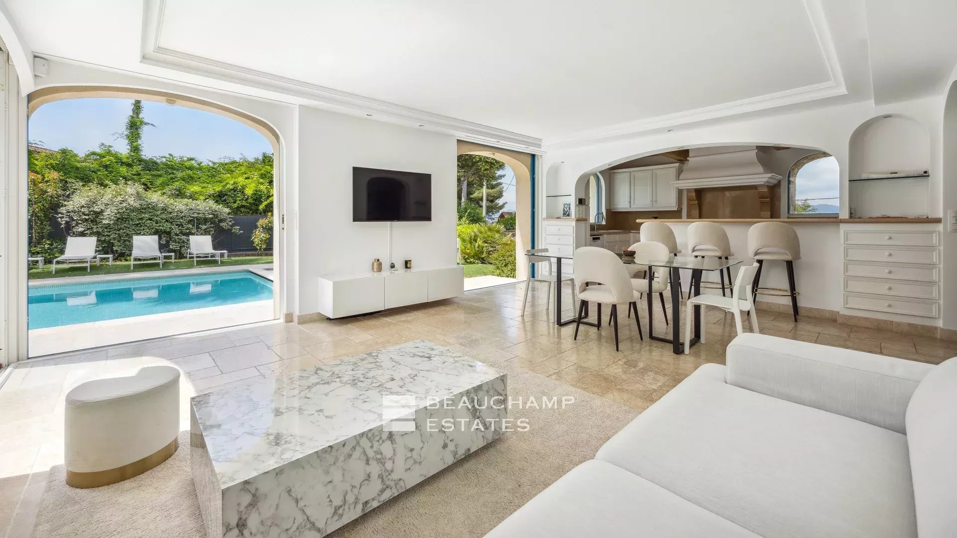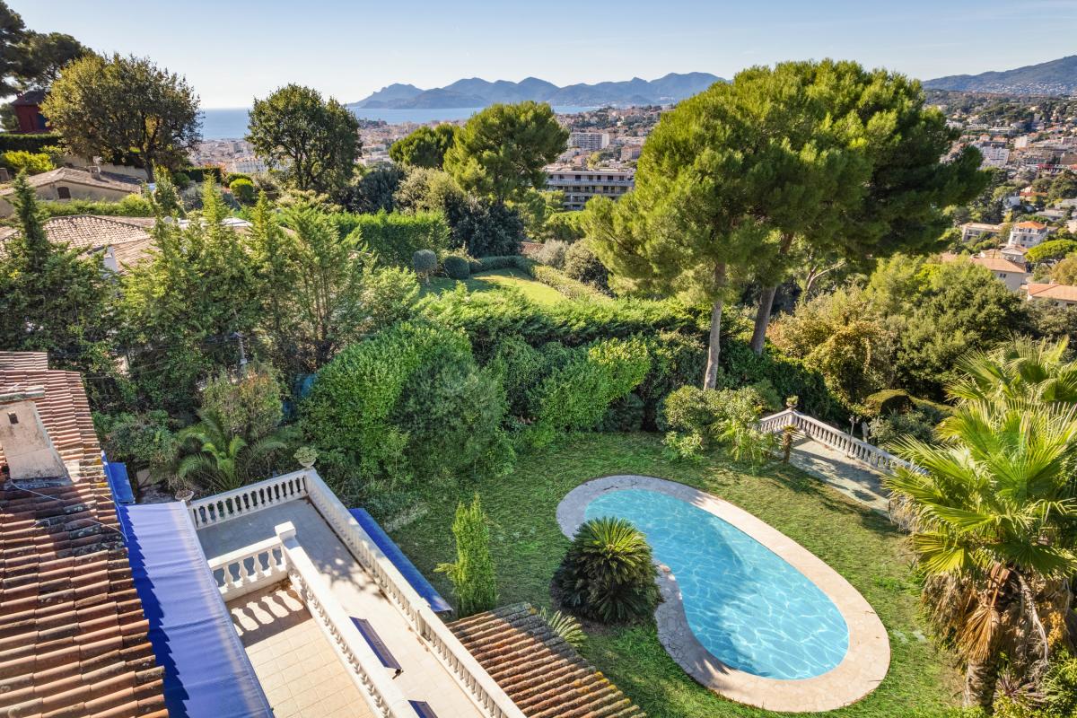 Super Cannes : Élégante villa 230m², grand plain-pied, piscine et espace bien-être en sous-sol.
