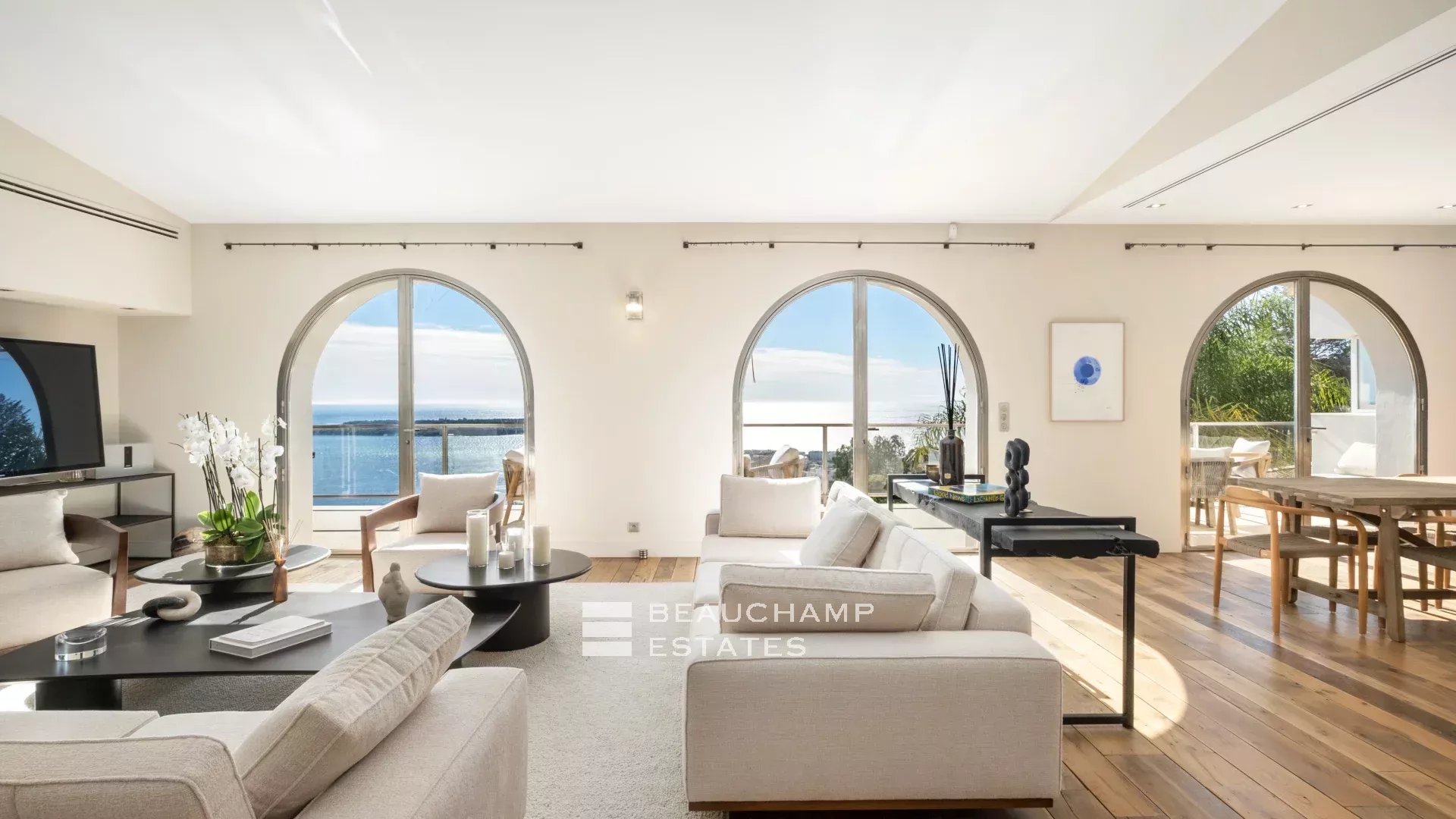 Située dans un domaine privé et sécurisé, cette villa offre une vue mer panoramique imprenable sur la baie de Cannes, les îles de Lérins et l'Esterel.