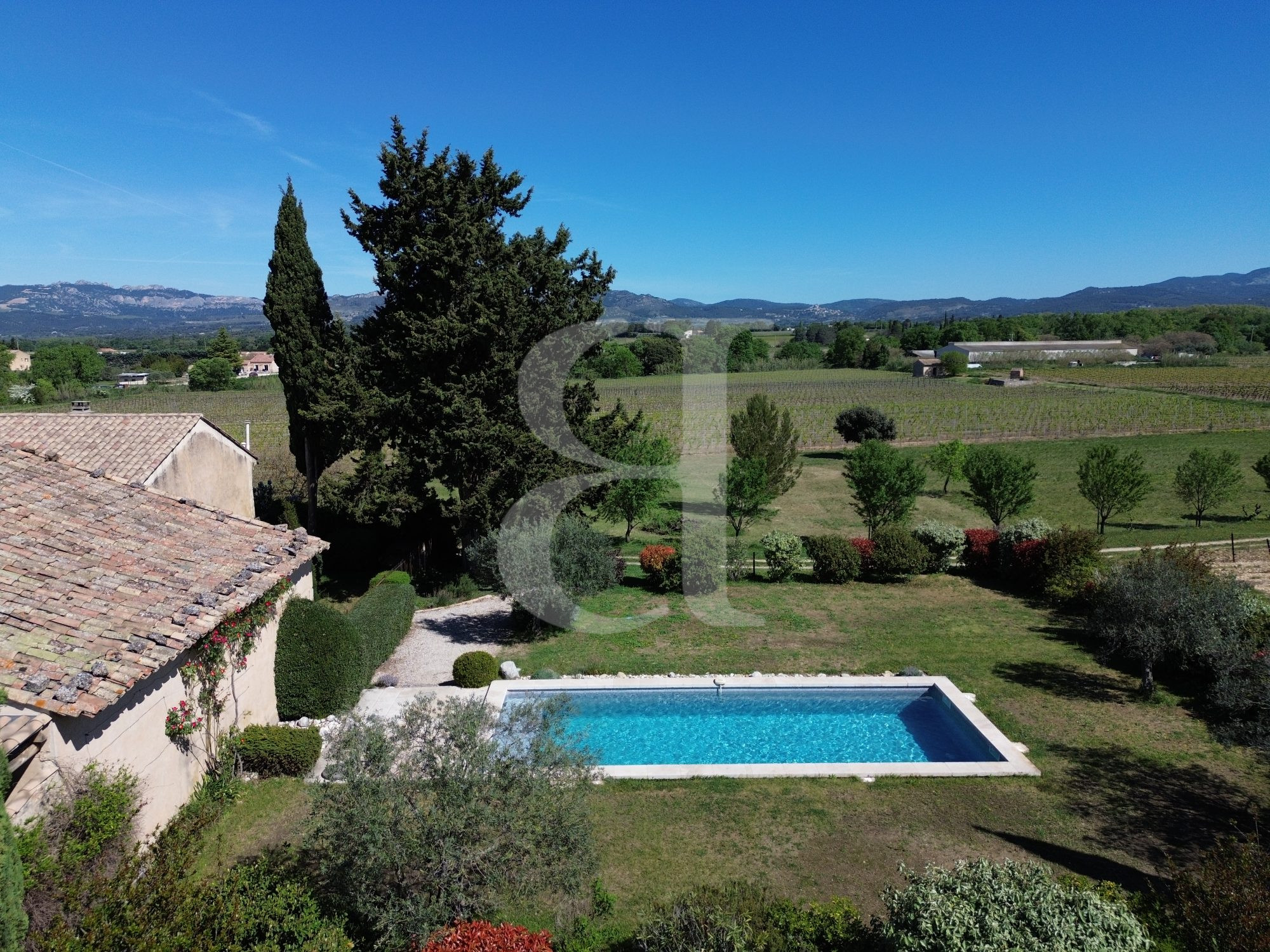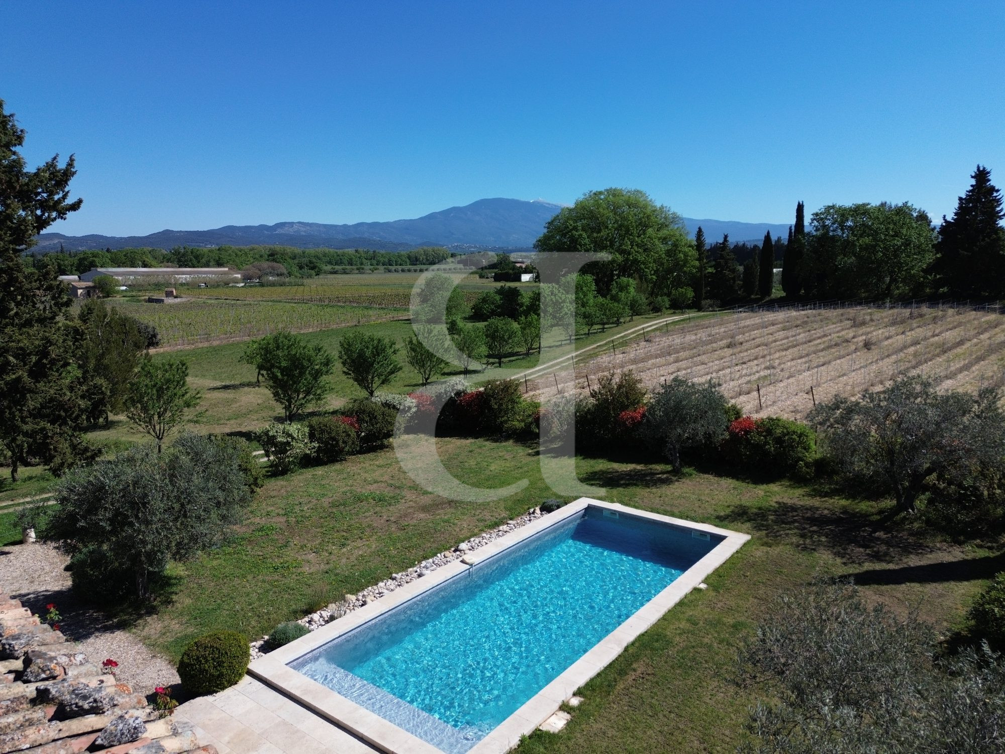 Entouré de vignes et d'un joli jardin au pied du géant de Provence, venez découvrir cet authentique mas confortable à vendre à Carpentras de 305m² environ avec ses 5 chambres en suites.