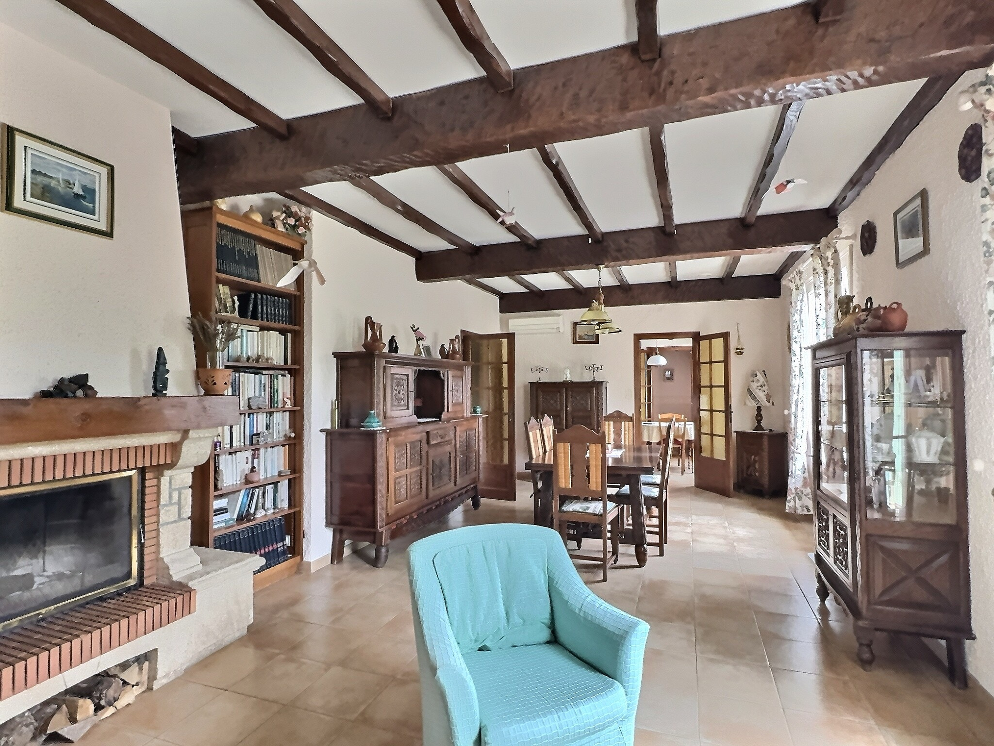 Grande pièce de vie très lumineuse avec climatisation réversible neuve (2025), finitions soignées et décoration actuelle.