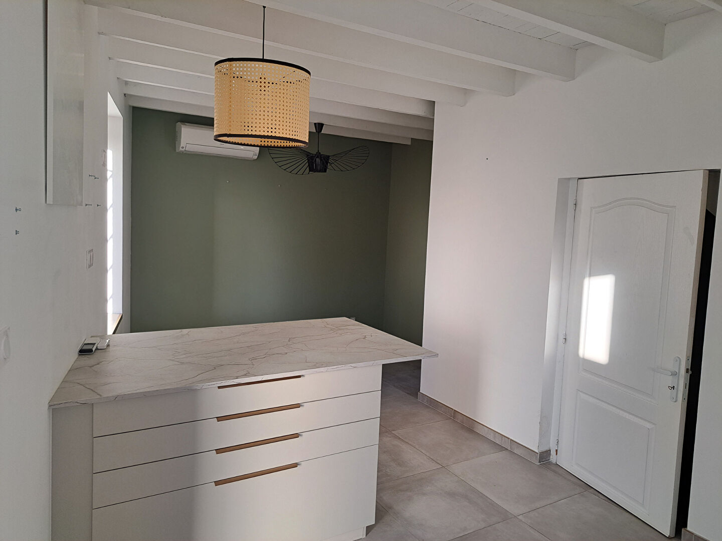 - Au rez-de-chaussée : une spacieuse pièce de vie avec sa cuisine ouverte.