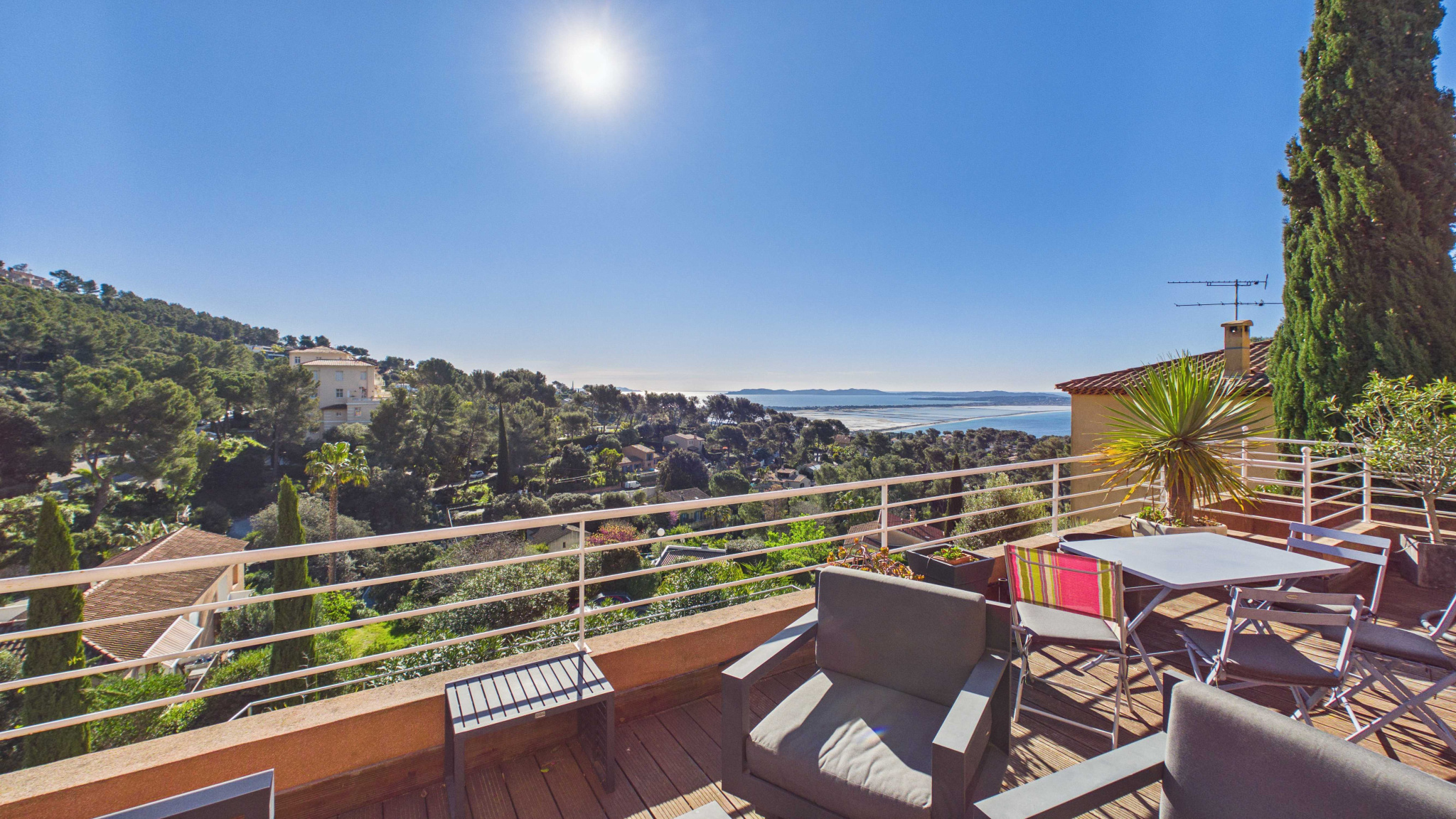 Sur les hauteurs de Hyères, découvrez cette maison individuelle avec vue imprenable sur Giens, le Tombolo et les Îles d'Or.