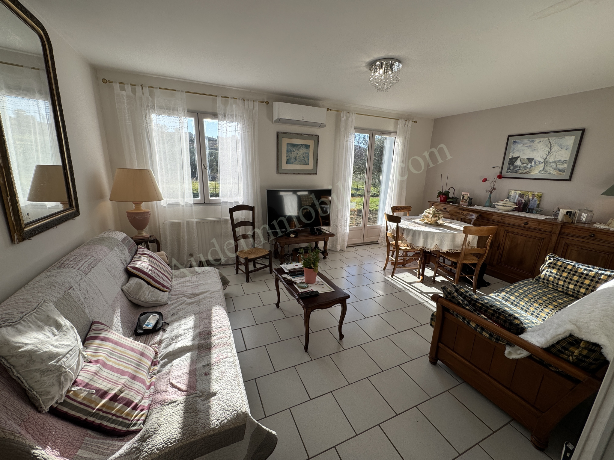 Villa bon état en situation dominante belle vue, grand séjour, cuisine, 3 chambres, terrasse, piscine, grand garage 50m2, cabane, chauffage au sol.