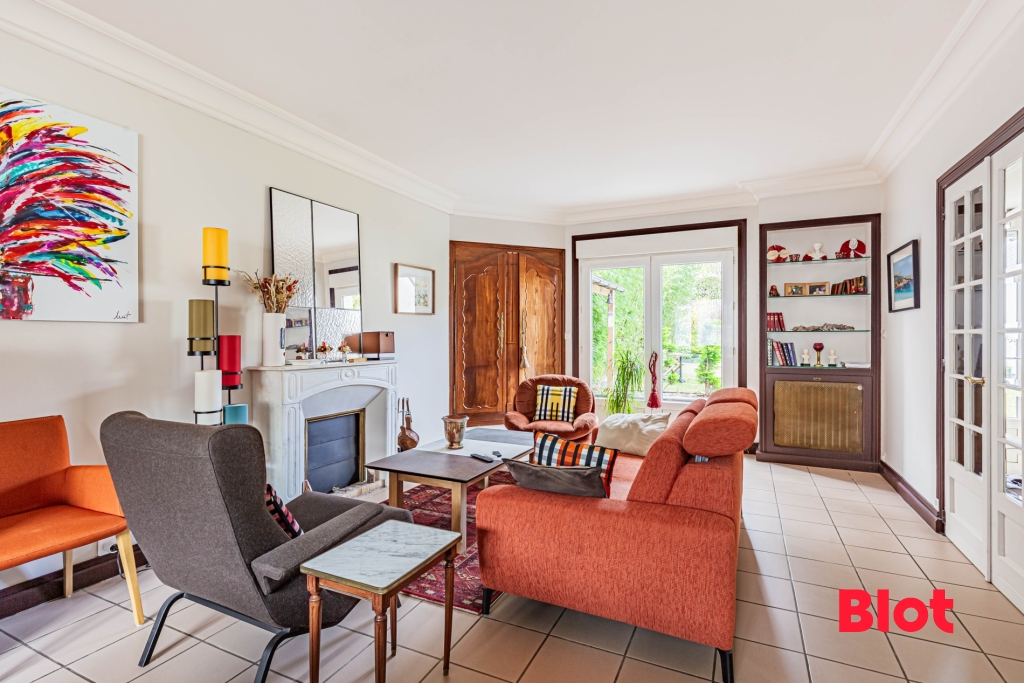 Maison en avenue privée au calme, lumineuse offrant un beau volume d'env. 172 m² et son garage avec encore du potentiel. Salon-séjour traversant avec cheminée, cuisine A/E, chambre et salle d'eau en rez-de-chaussée. A l'étage : 4 chambres et bu...